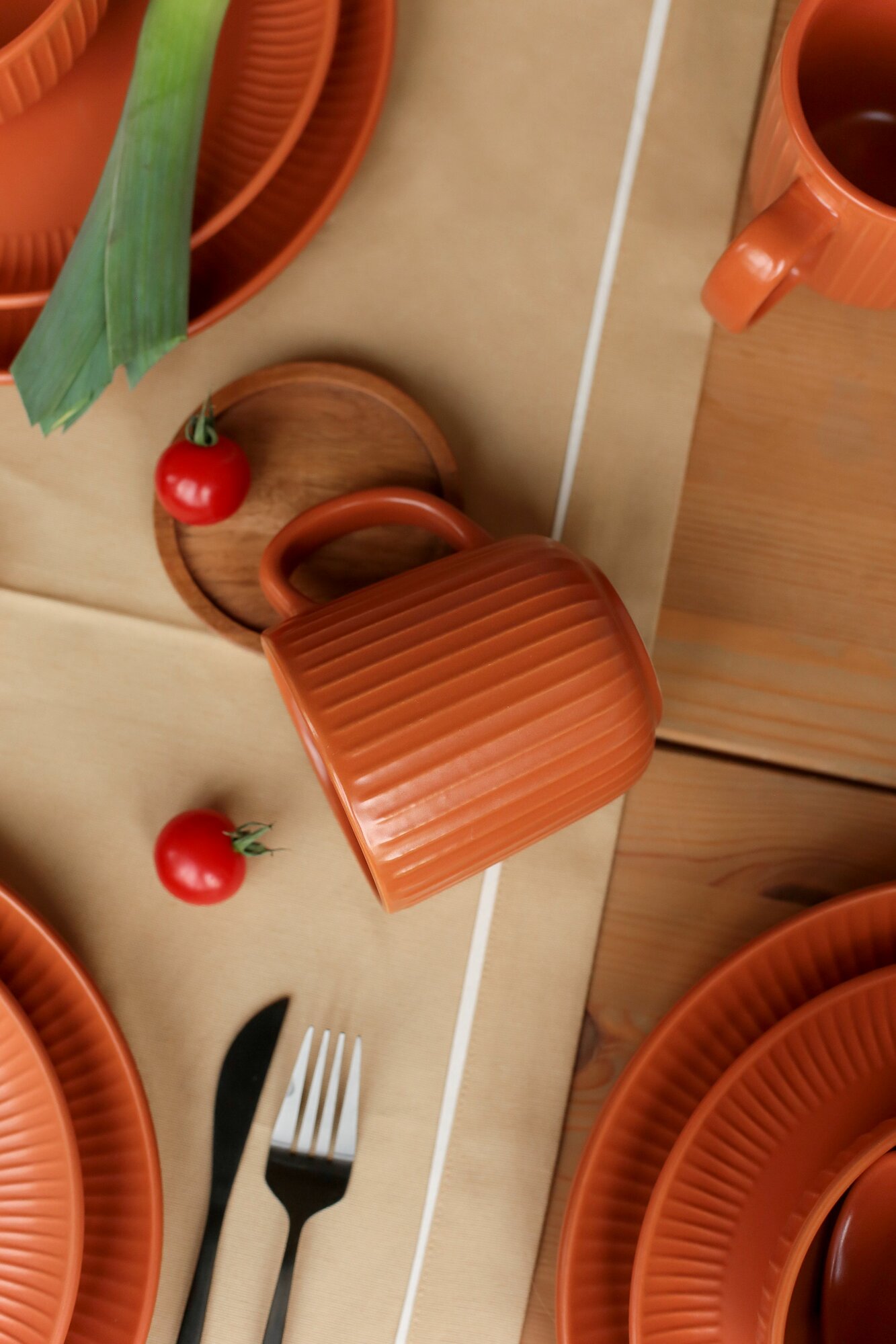 СохранитьНабор посуды на 4 персоны 16 предметов "Costa brick" керамика. Столовый сервиз обеденный c кружками и салатниками интересное: