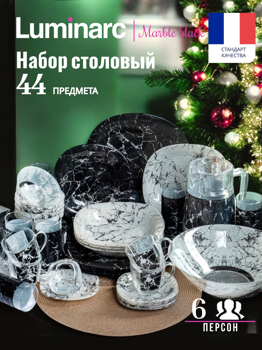 Купить Столовый набор посуды Luminarc CARINA MARBLE BLACK 44 предмета