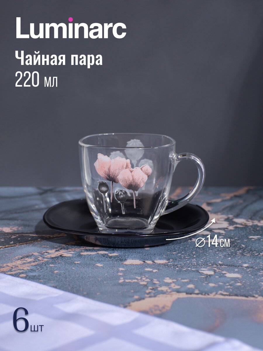 Luminarc Чайный стеклянный набор Luminarc «Идиллия», 12 предметов: кружка 265 мл, 6 шт, блюдце d=13 см, 6 шт, цвет лилак