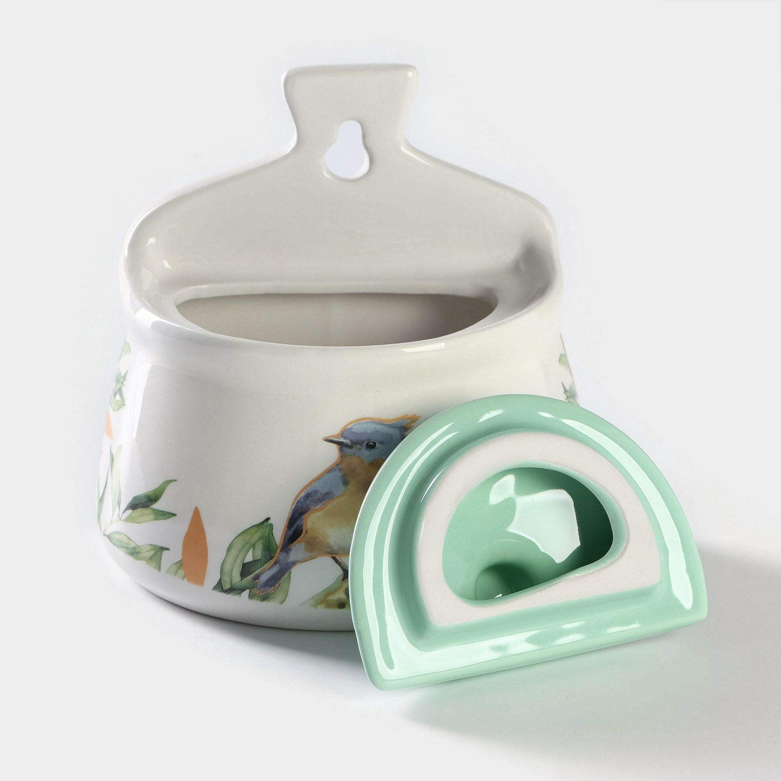 Солонка керамическая подвесная, с крышкой Доляна «Флора и Фауна» 600 мл, цвет белый