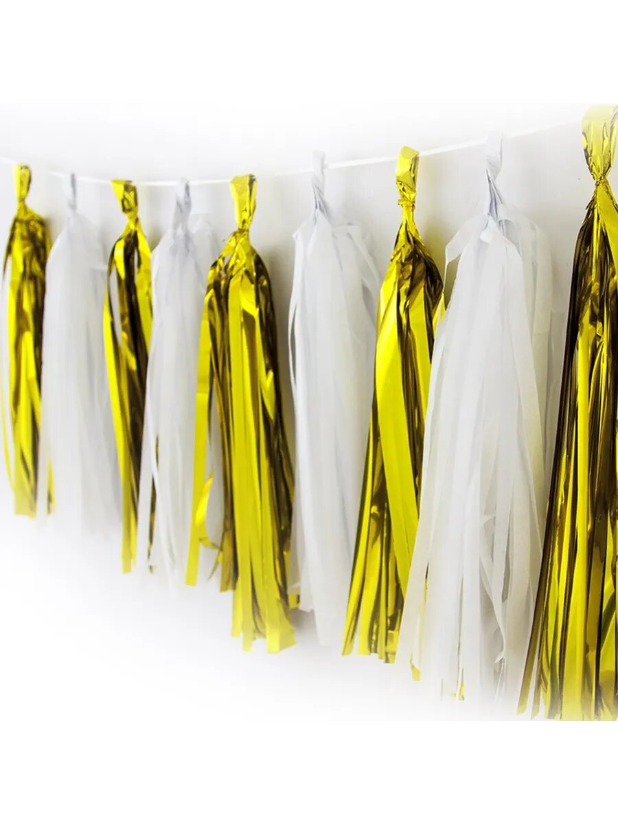 Купить Гирлянда Тассел, Золото/Белый, Металлик, 35*12 см, 10 листо