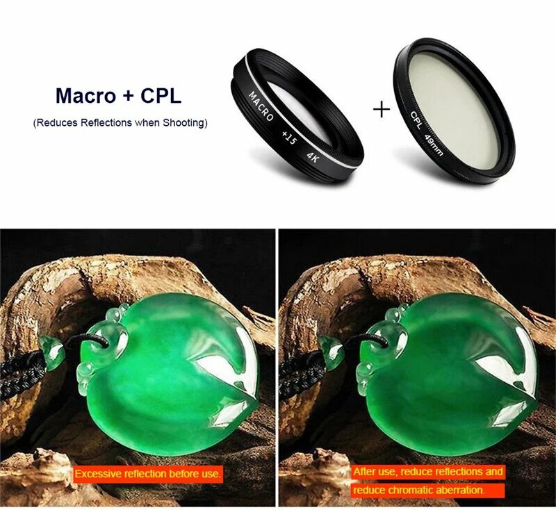 Макрообъектив 37 мм 15X 4K HD, 15X Macro Lens