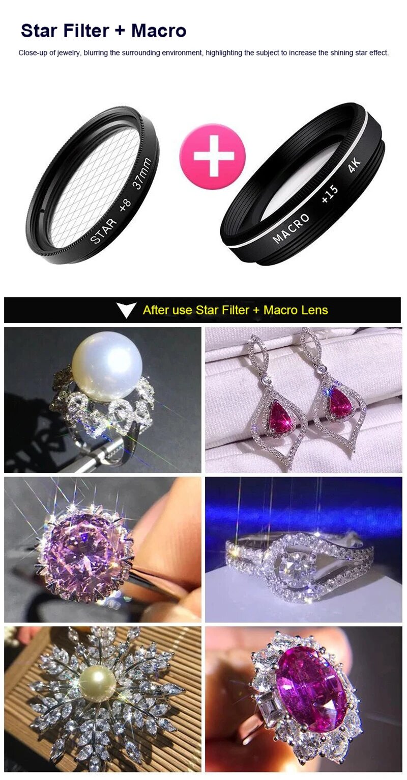 37 мм 15X макрообъектив 4K HD профессиональная фотография телефонная камера объектив для ресниц ювелирные изделия с бриллиантами 30X макрообъектив для смартфона, 15X Macro Lens