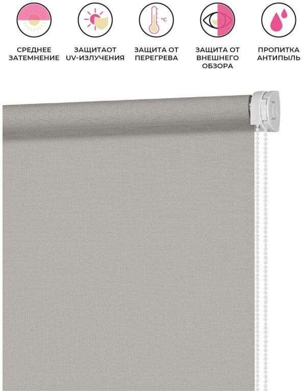 Рулонная штора Decofest Апилера, снежный серый, миниролл, 70 x 160 см
