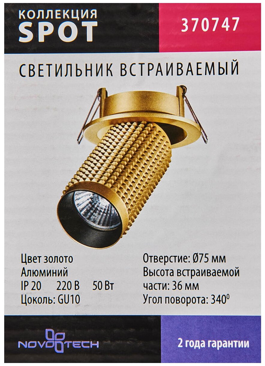 Светильник встраиваемый NOVOTECH MAIS 370747 GU10 50W золото