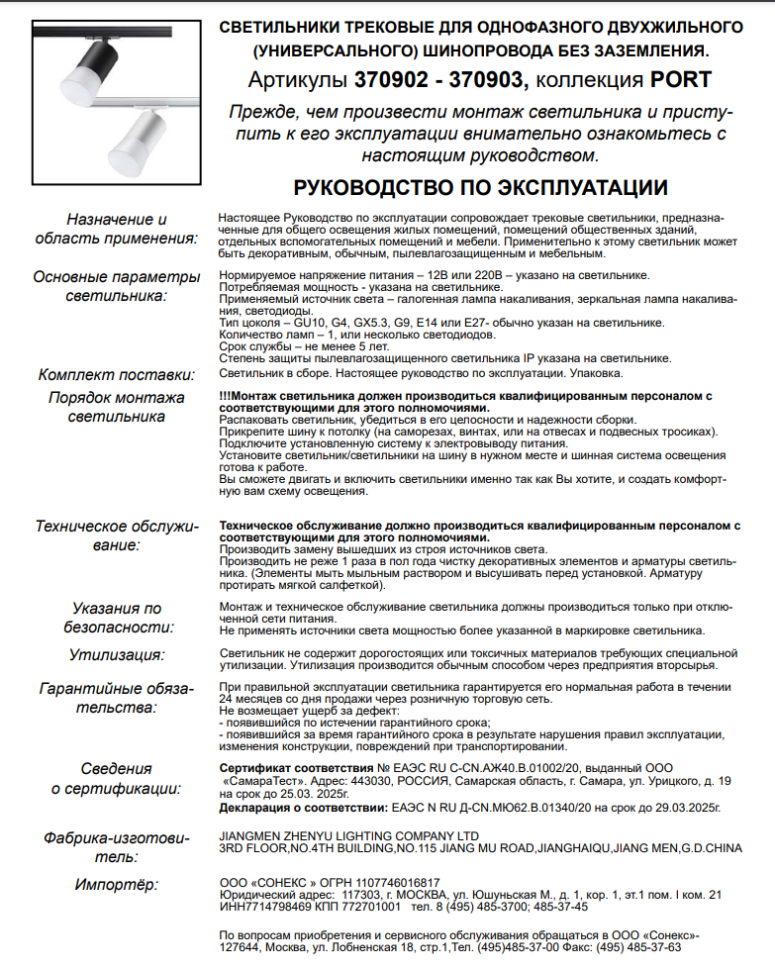 | Дополнительная информация | поворотный светильник, угол поворота: 90° / 355° |