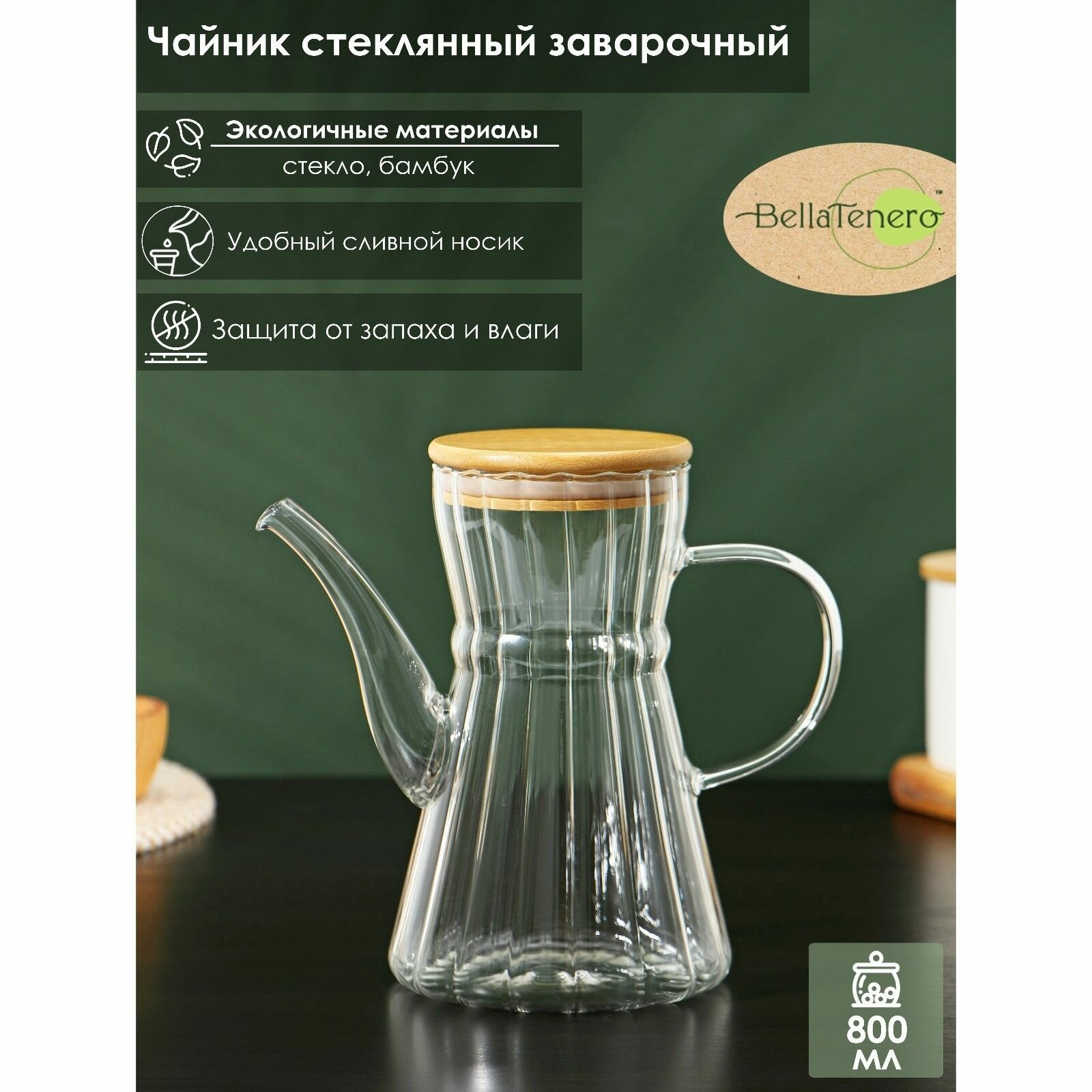 Заварочный чайник BellaTenero «Эко. Восток», 800 мл, 18×11,5×17 см, с бамбуковой крышкой, стекло