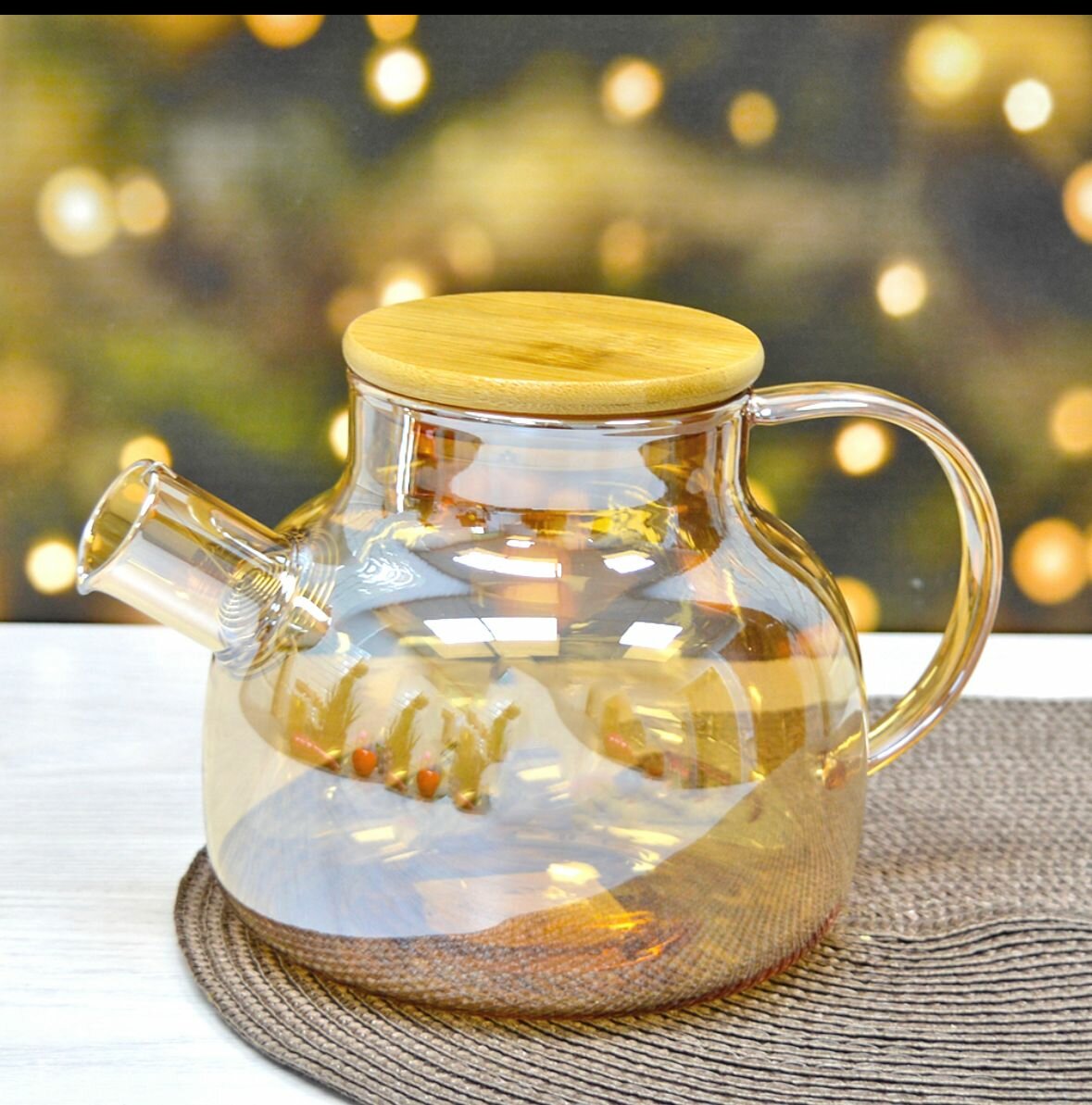 Чайник заварочный стеклянный 1 л, с бамбуковой крышкой + фильтр, золотистый интересное: