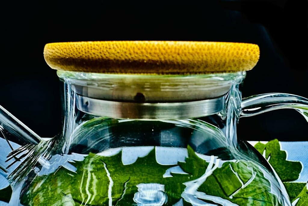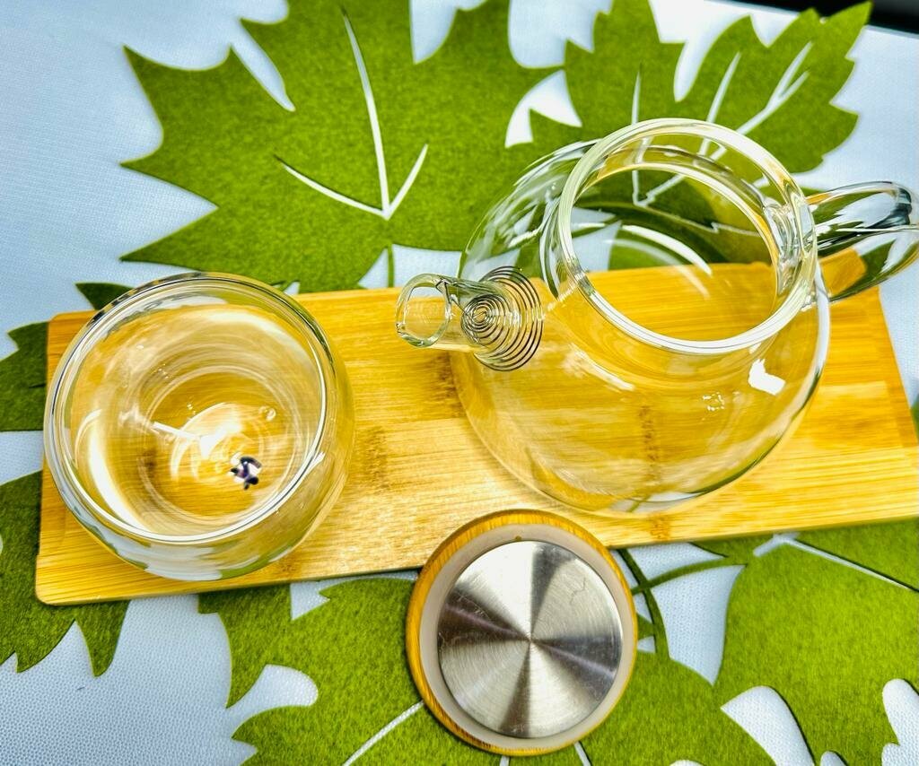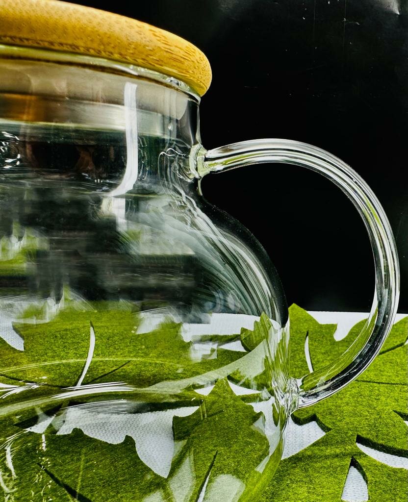 Чайник заварочный стеклянный 1 л, с бамбуковой крышкой + фильтр, прозрачный