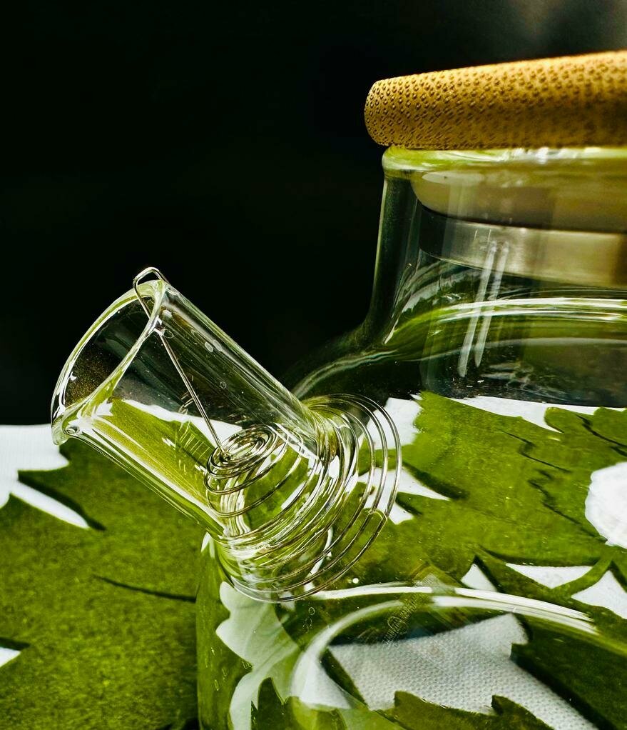 Чайник заварочный стеклянный 1 л, с бамбуковой крышкой + фильтр, золотистый