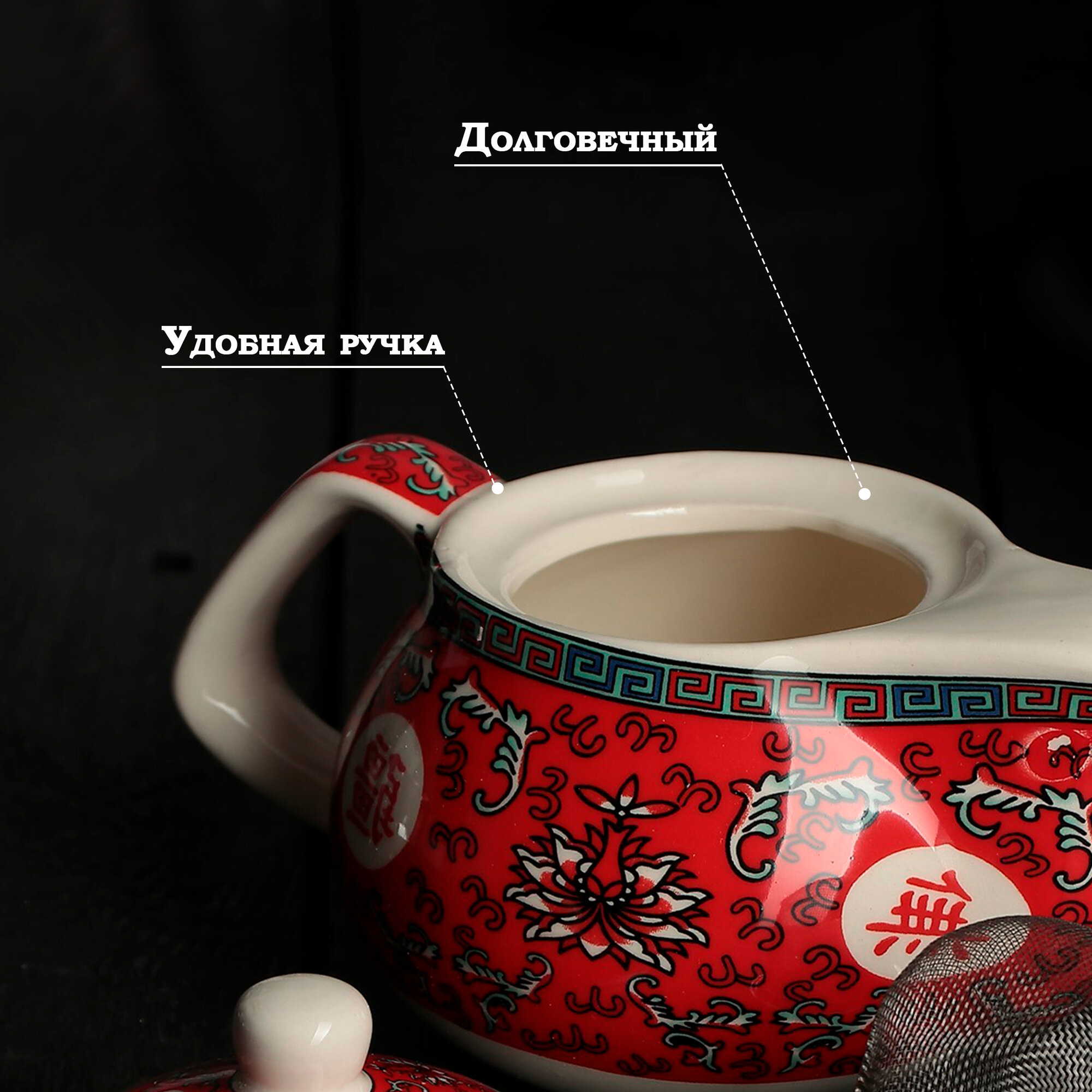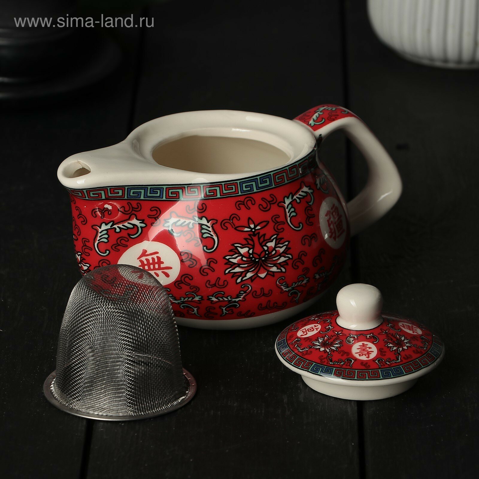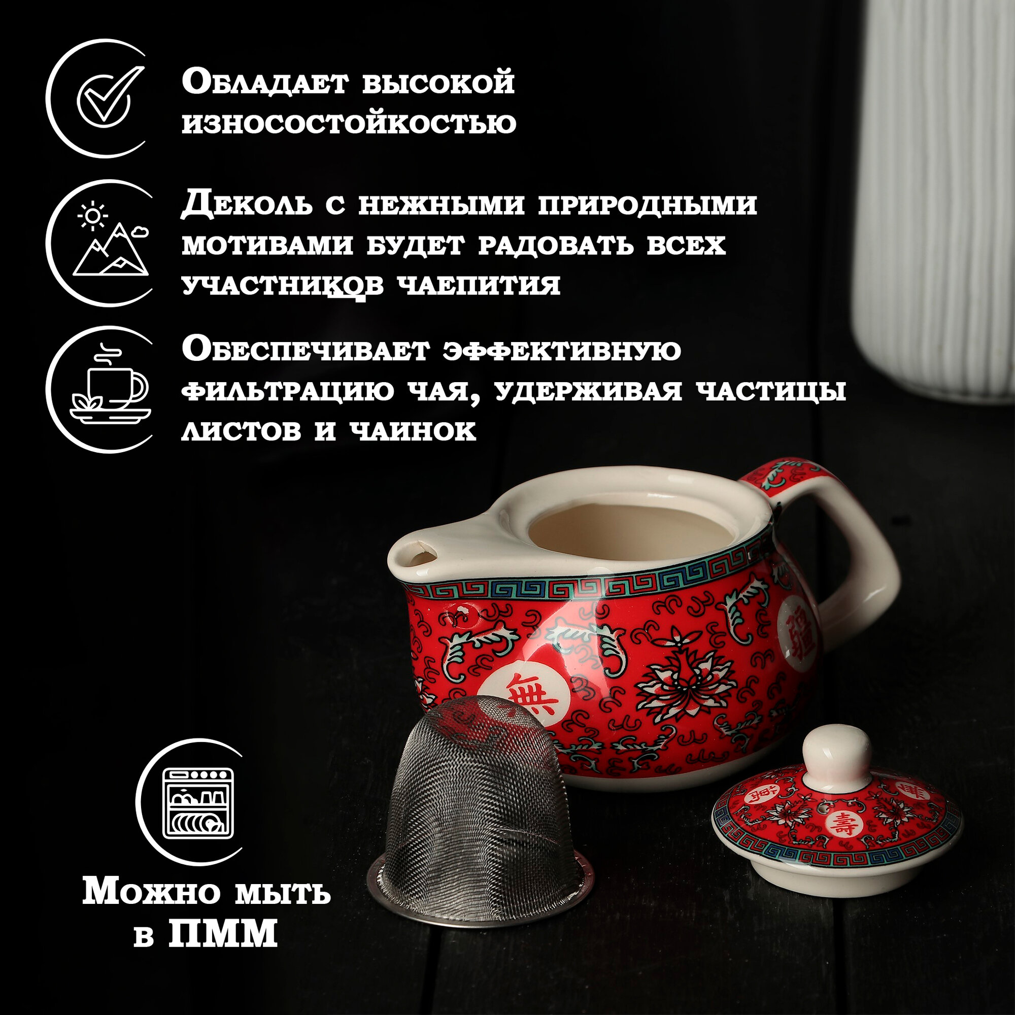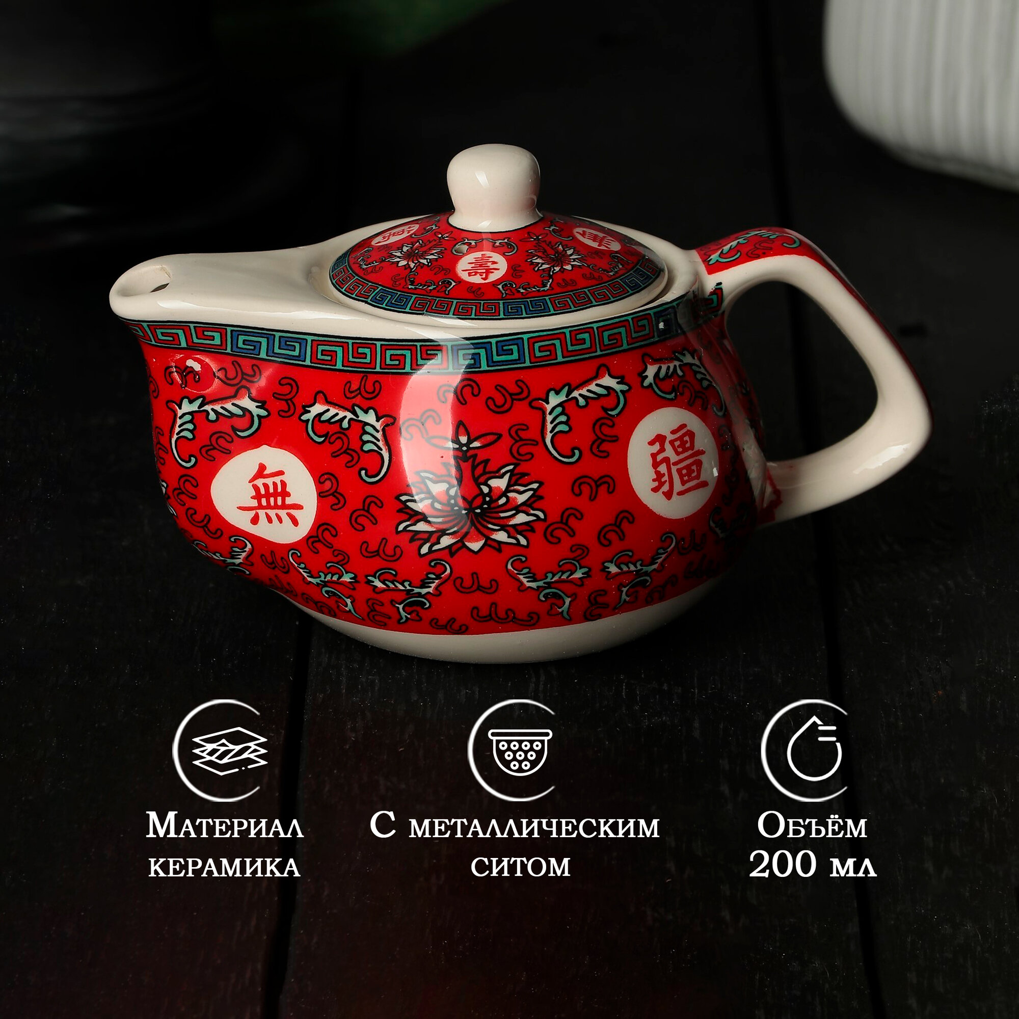 Чайник керамический заварочный с металлическим ситом «Лотос», 200 мл, цвет красный