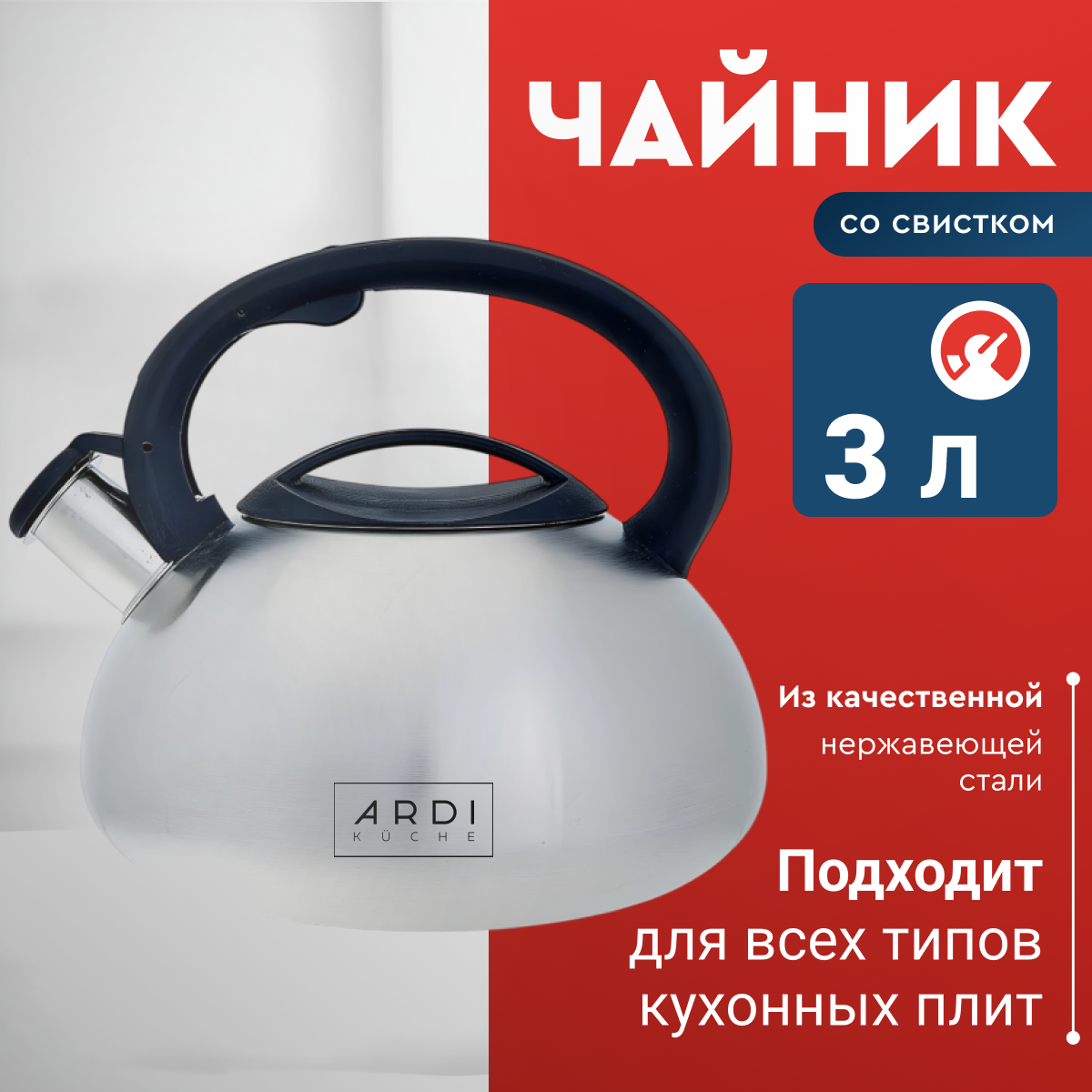 Купить Чайник со свистком ARDI Küche AR-313 из нержавеющей стали, 3 л