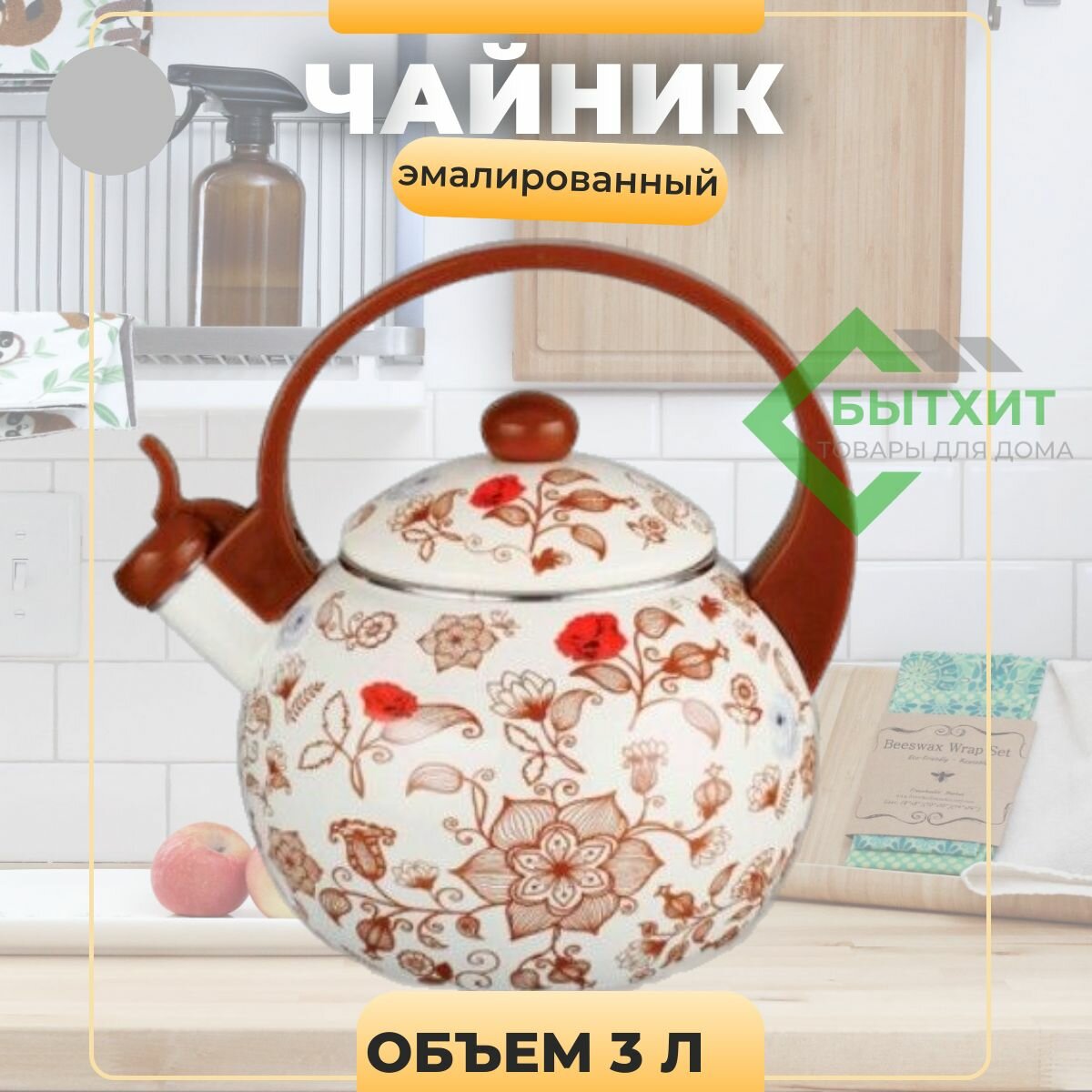 Эмалированный чайник Kelli KL-4497 со свистком для плиты / 2.5 литра