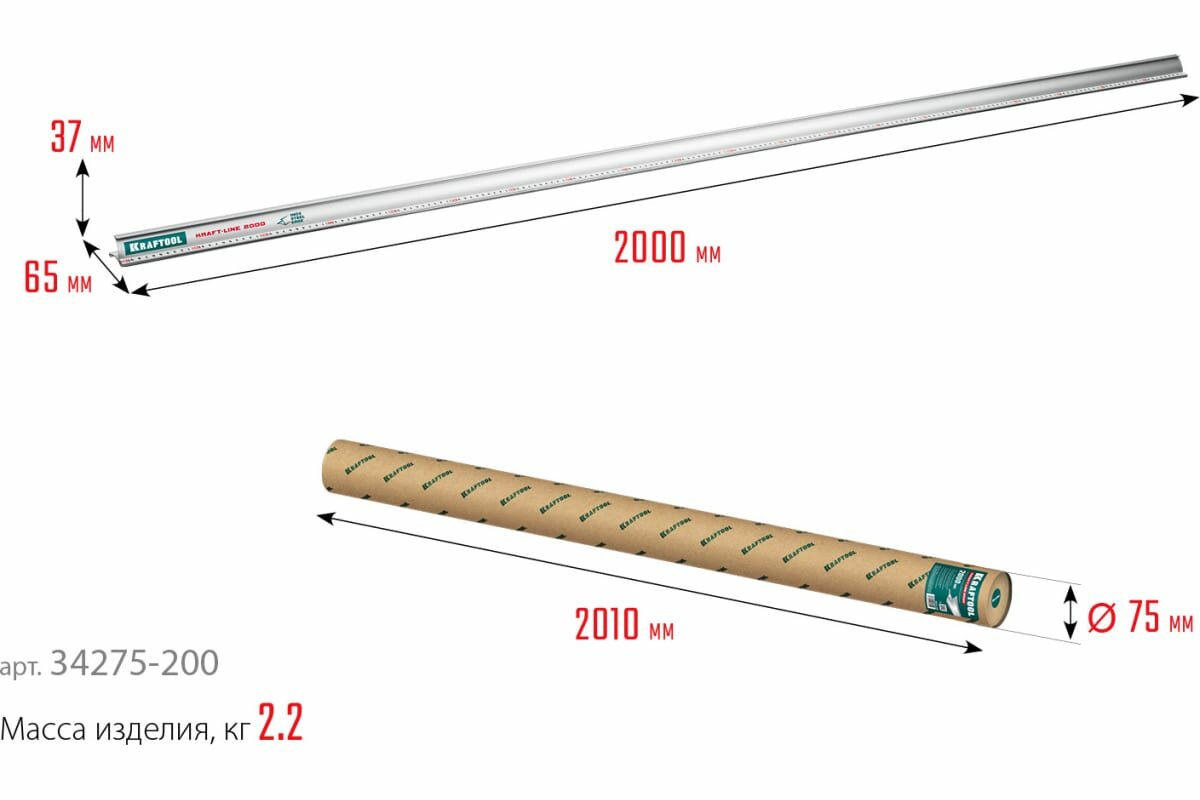KRAFTOOL KRAFT-LINE, 2.0 м, усиленная алюминиевая линейка со стальной направляющей (34275-200)