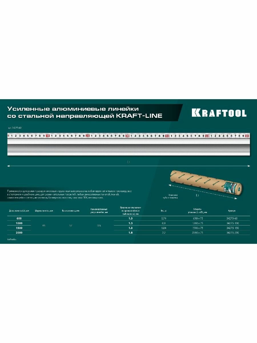 Усиленная алюминиевая линейка со стальной направляющей KRAFTOOL KRAFT-LINE, 1.5 м (34275-150)