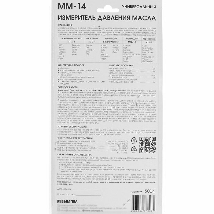 Универсальный масломер Вымпел ММ-14 для иномарки+ВАЗ