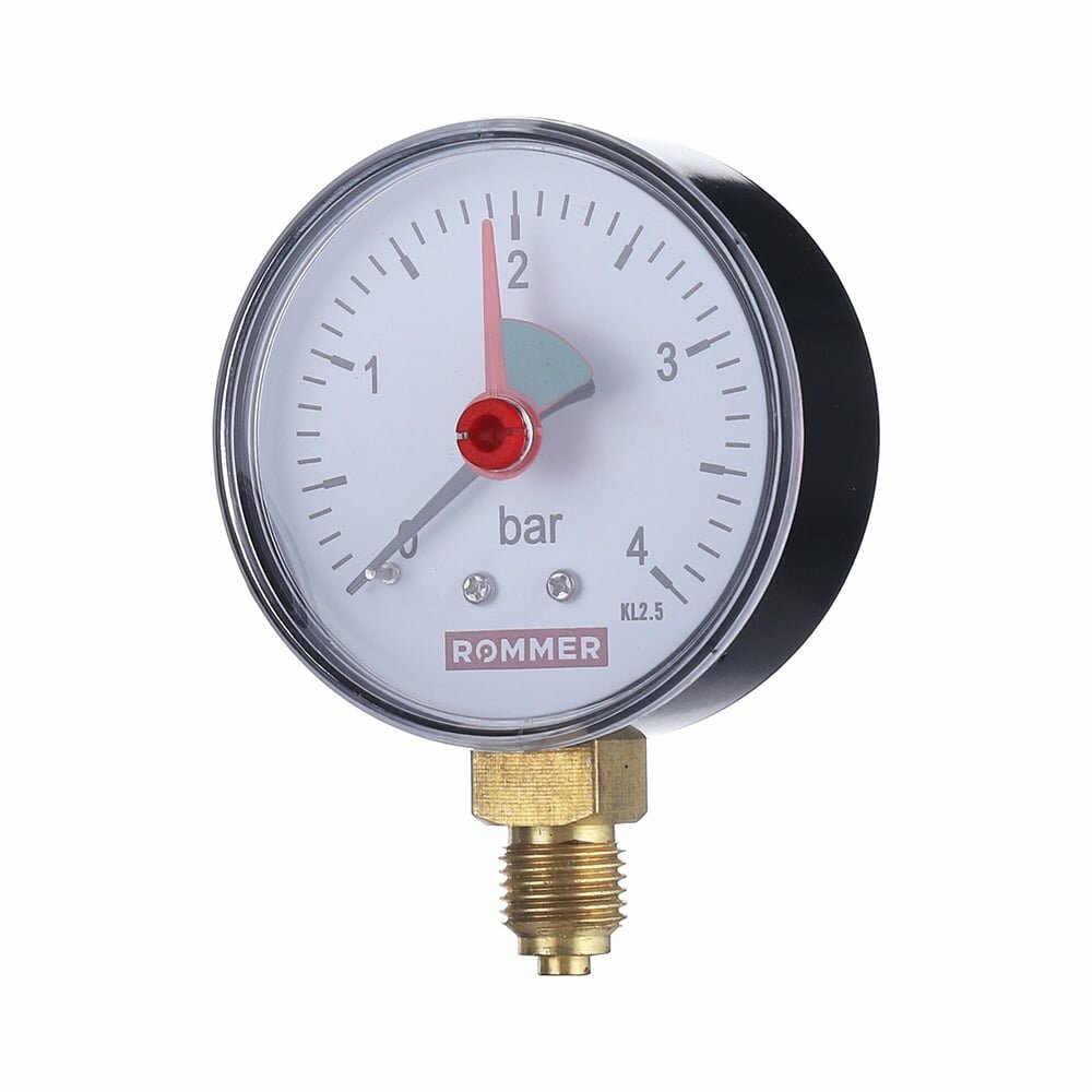 Манометр радиальный ROMMER RIM-0008 - 1/4" (D50 мм, шкала 0-4 бар, с указателем предела)