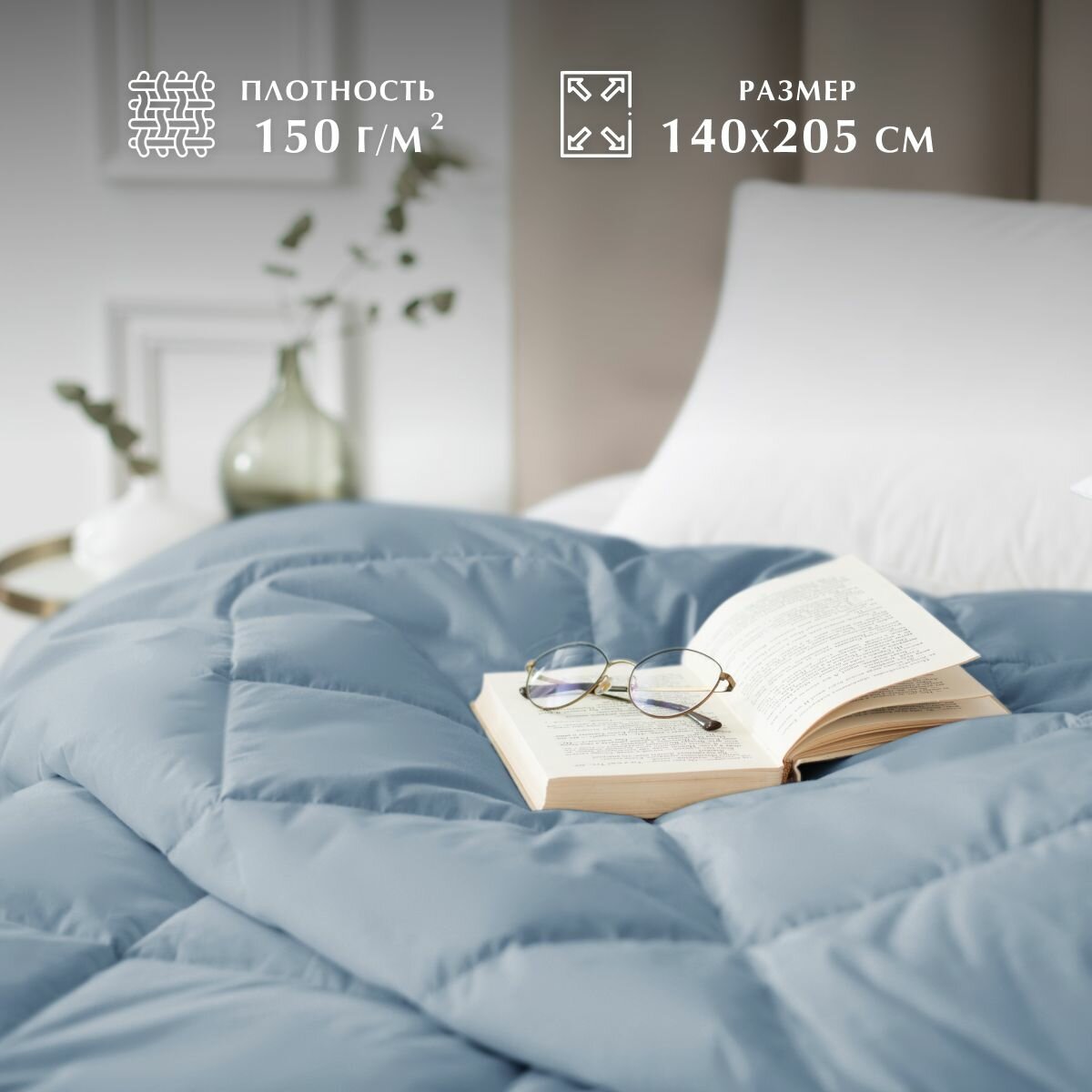 Одеяло Guten Morgen Softt, 2-х спальное, 172см x 205см, цвет: Деним, силиконизированное волокно