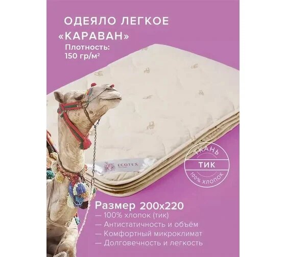 СохранитьEcotex Одеяло стеганое шерстяное облегченное Караван верблюжья шерсть евро 200x220 оовте 4607132575145 интересное: