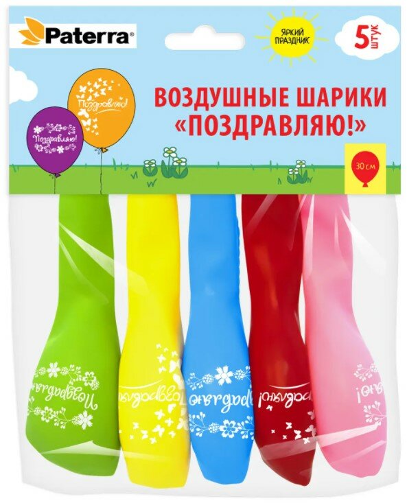 Воздушные шарики Paterra Поздравляю, 30 см, разноцветные, 5 шт