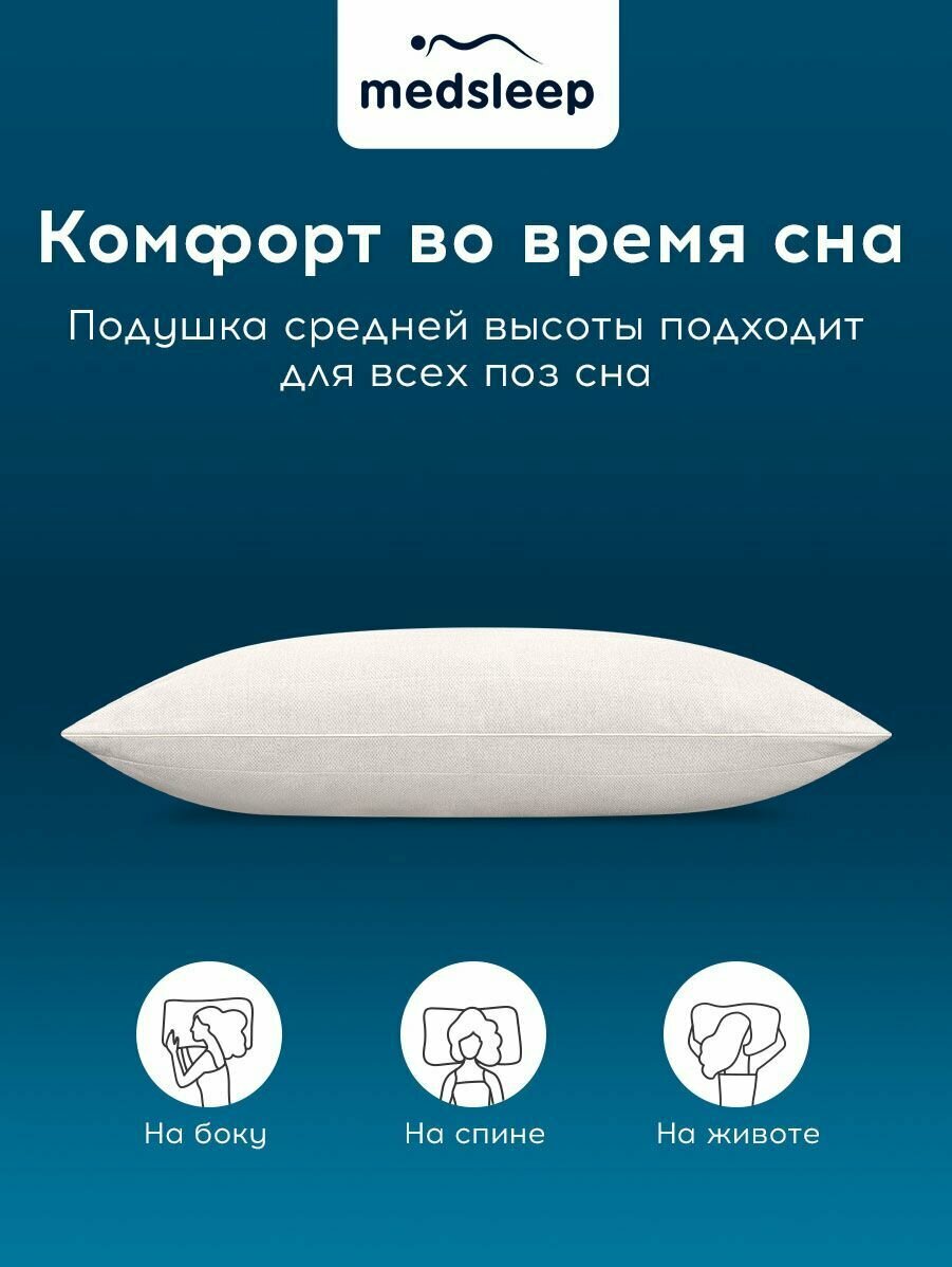 Medsleep Подушка стеганая "ARIES" хлопок, с наполнителем Шерсть, средняя жесткость 50x70 см 1 - пр.