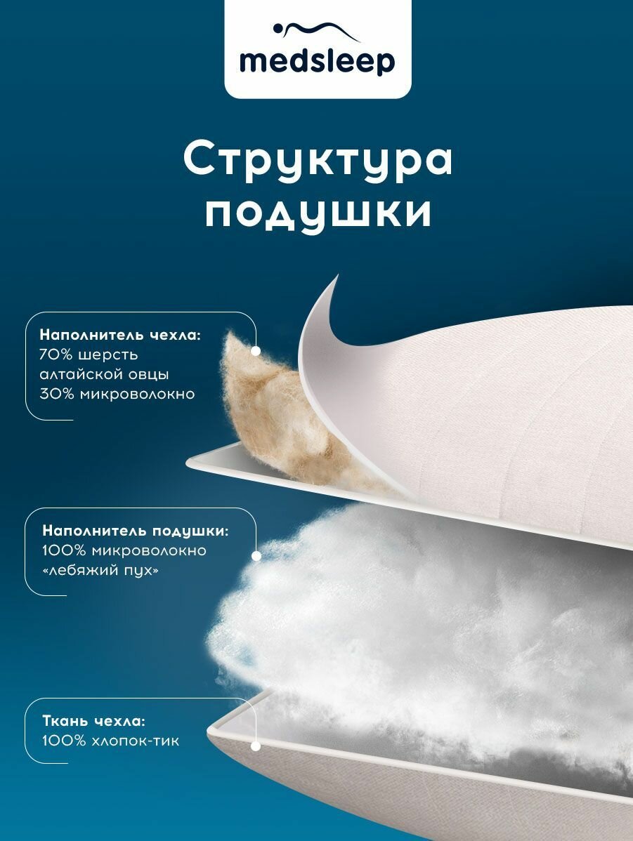 Купить Medsleep Подушка детская для сна "Aries" стеганая, в хлопковом чехле с овечьей шерстью и микроволокном "Лебяжий пух", 40х60
