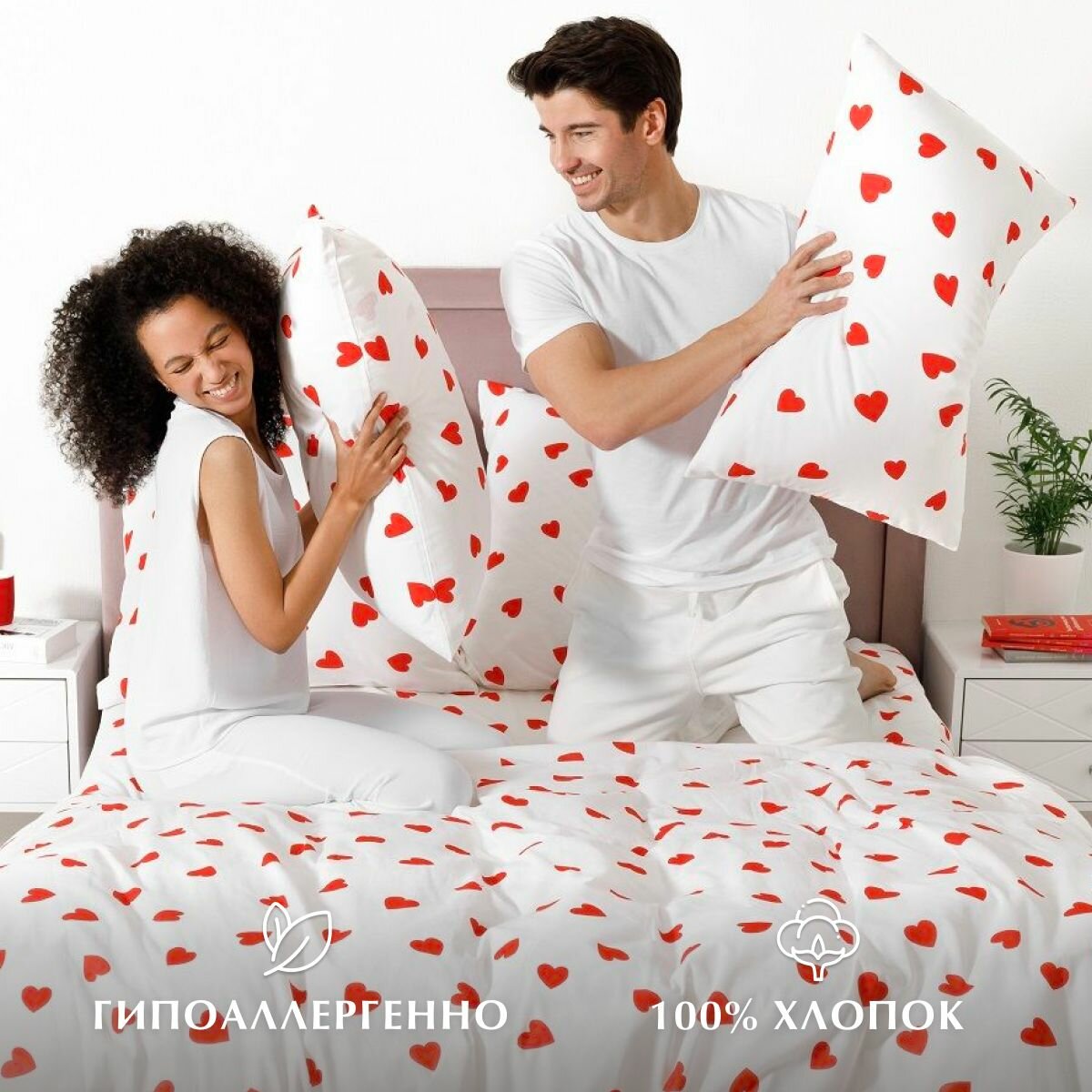 Постельное белье, Бязь, Евро, 2 наволочки 70х70, GM, In love 100% хлопок IKEA,