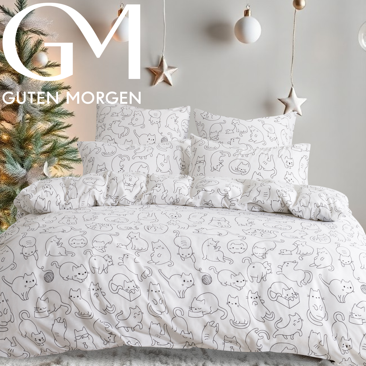 Комплект постельного белья, Бязь, Guten Morgen, 1.5 спальный с нав. 70х70 см, рис.1145, Cat party