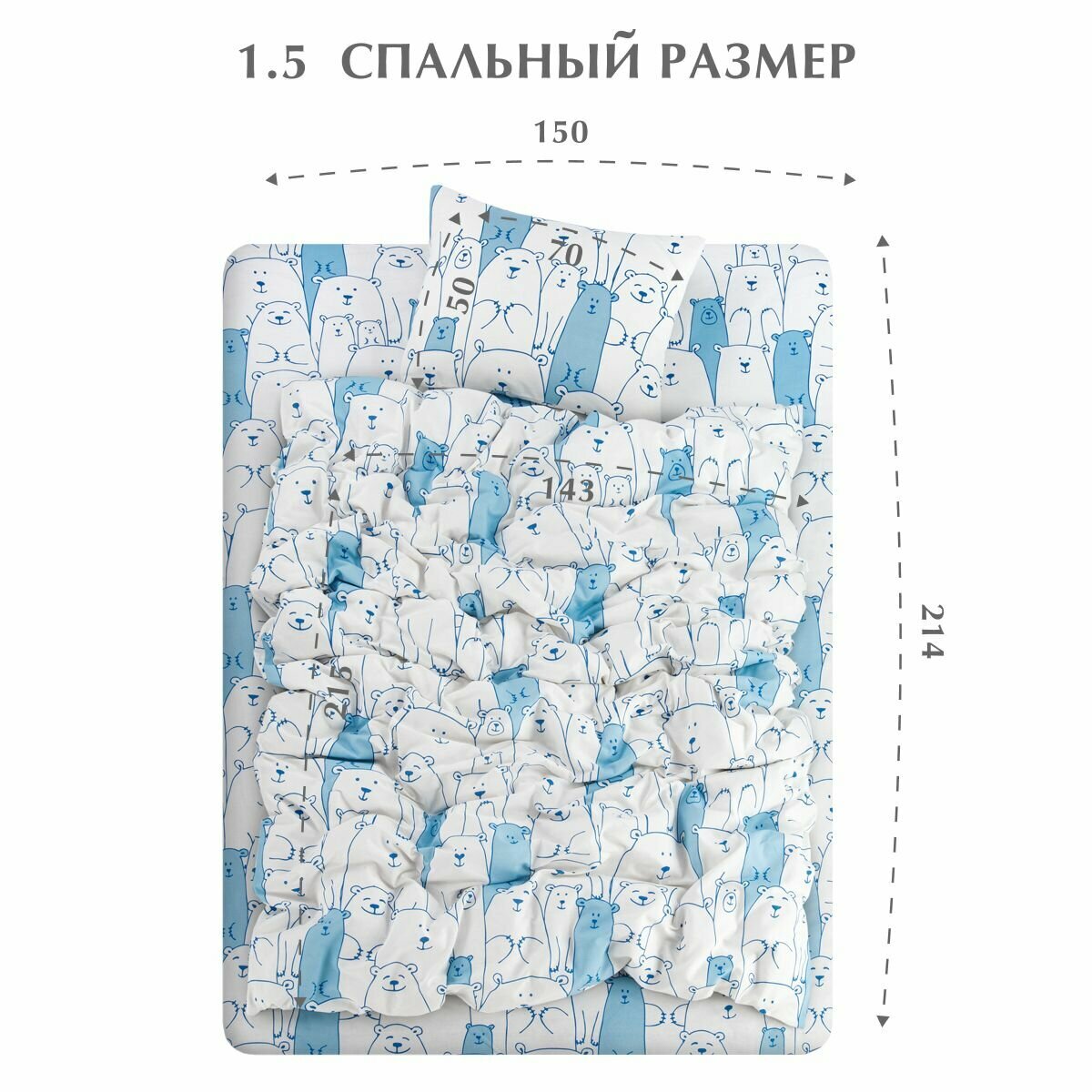 Постельное бельё/1.5/простынь 150x214/наволочки 70x70/комплект/бязь/Guten Morgen