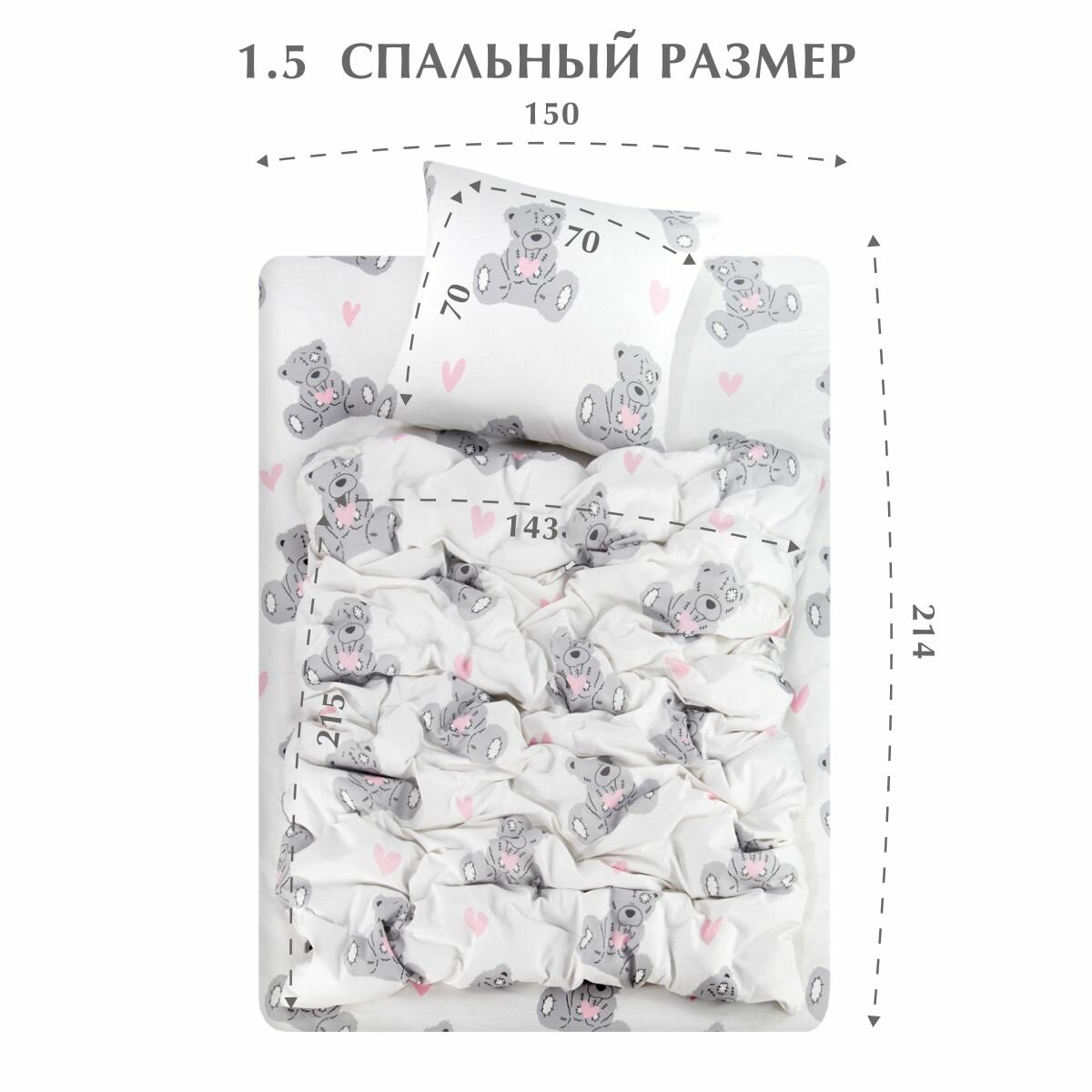 Комплект постельного белья, Бязь, Guten Morgen, 1.5 спальный с нав. 70х70 см, рис.1151, Cuties