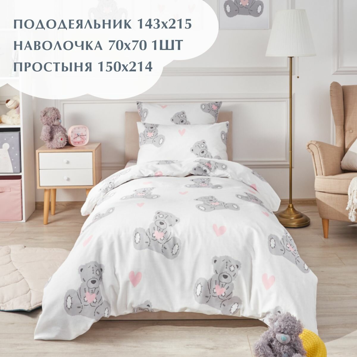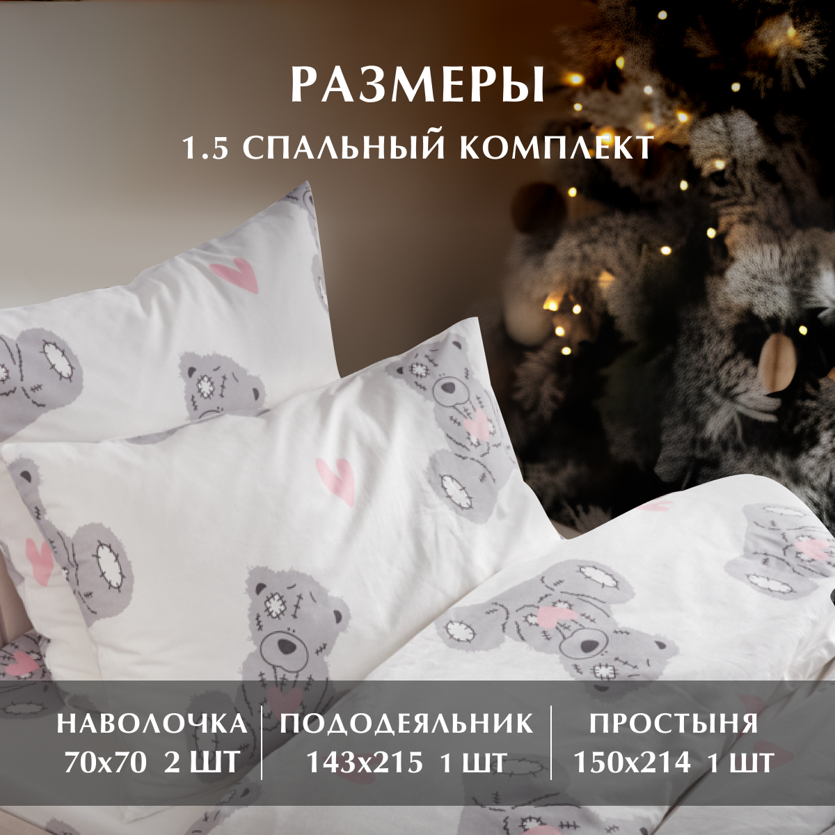 Купить Постельное белье, Бязь, 1.5 спальное, 1 наволоча 70х70, GM, Teddy 100% хлопок на Новый год