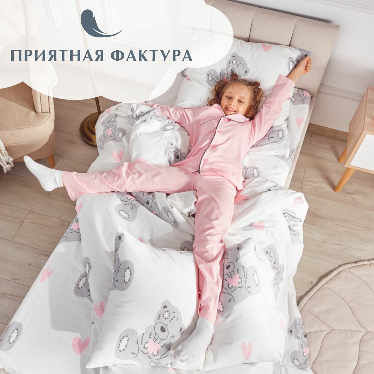 Постельное белье 2 спальный комплект с Евро простыней Бязь Guten Morgen Cuties, наволочки 50х70, 100% хлопок