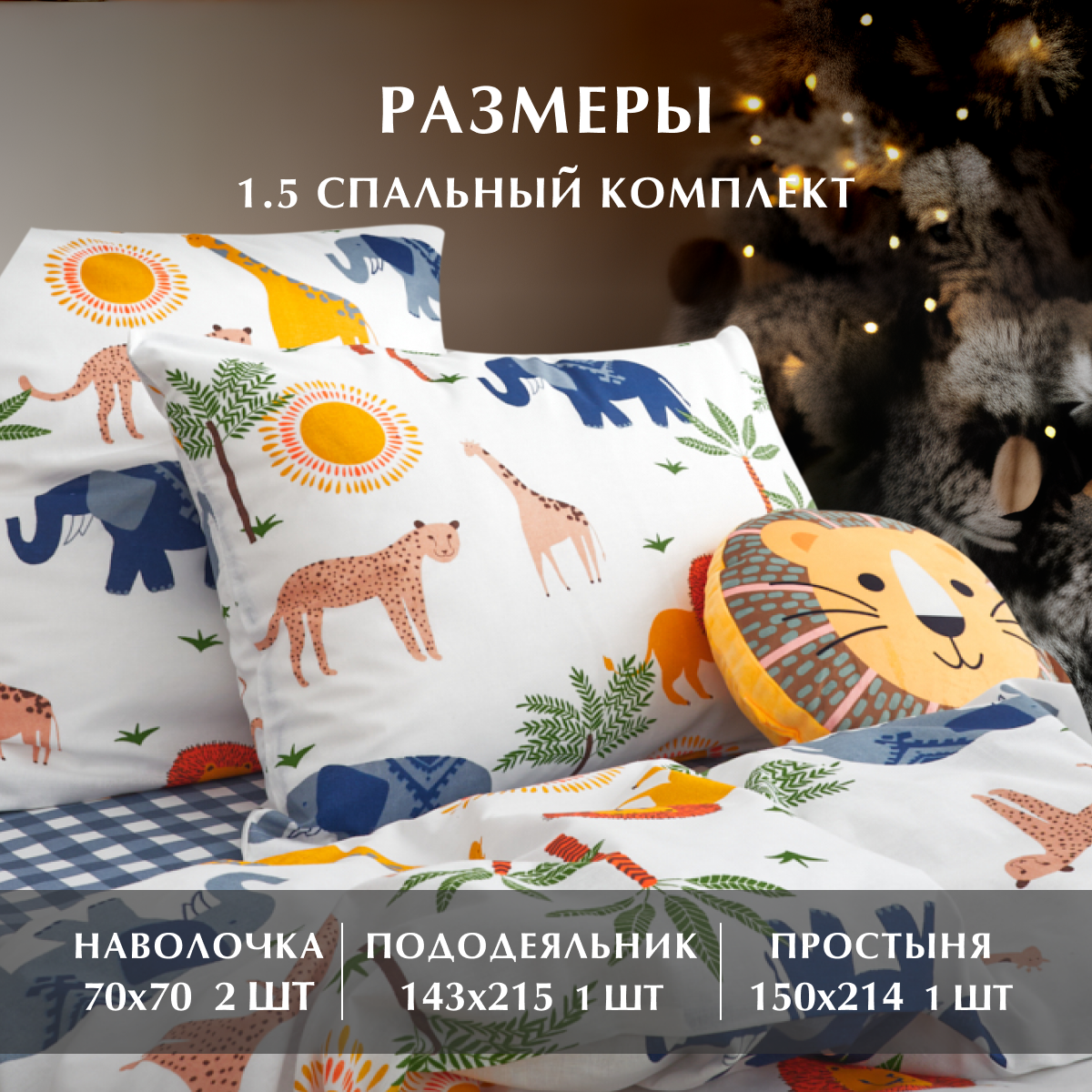 Постельное белье, Бязь, 1.5 спальное, 1 наволочка 50х70, GM, Аnimal traffic 100% хлопок
