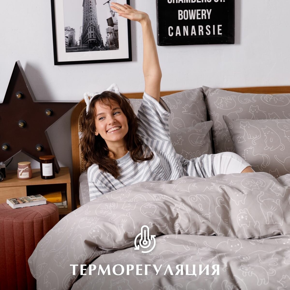 Постельное белье 1.5 спальное Бязь Guten Morgen Hometown, наволочки 70х70, 100% хлопок