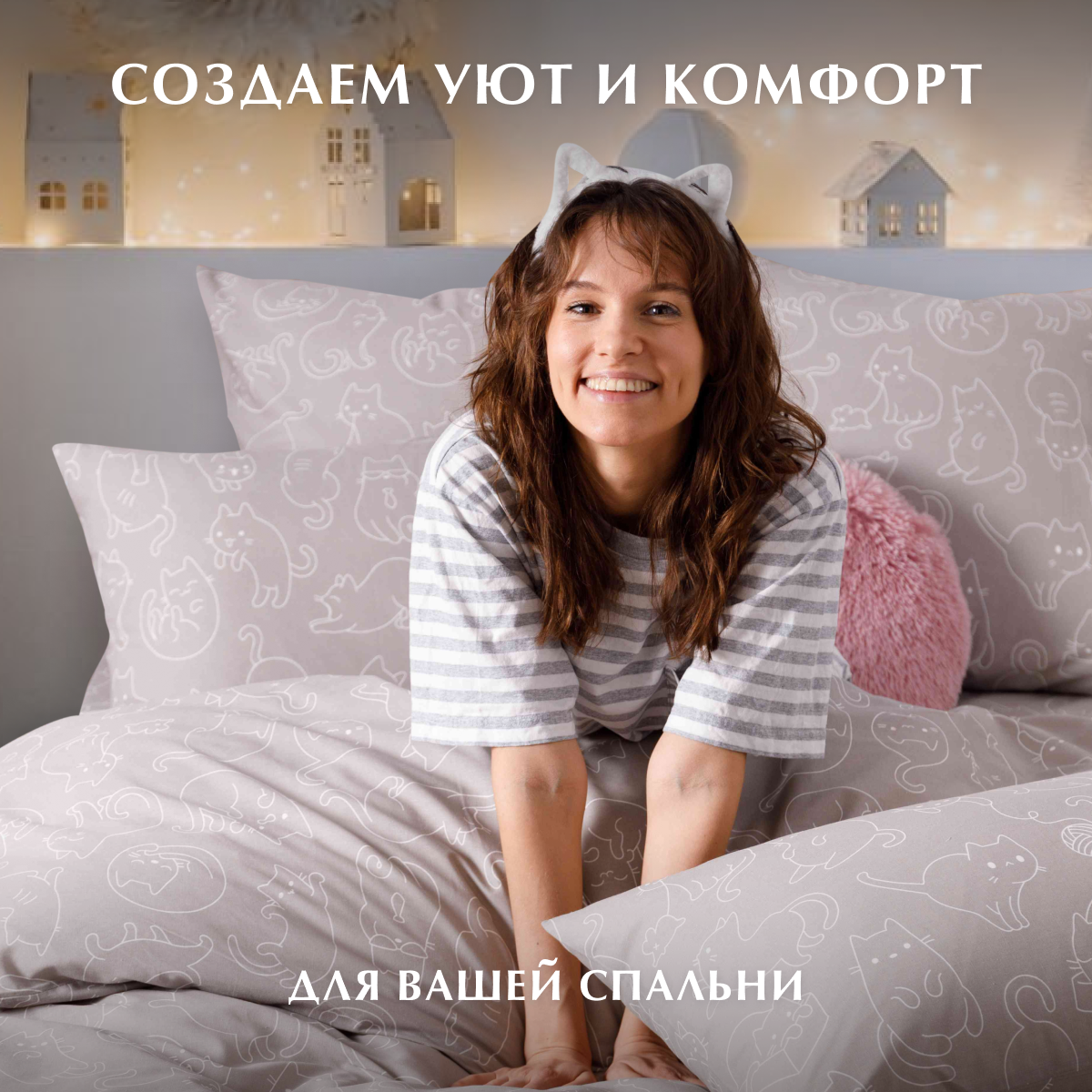 Комплект постельного белья, Бязь, Guten Morgen, 1.5 спальный с нав. 70х70 см, рис.1145, Cat party