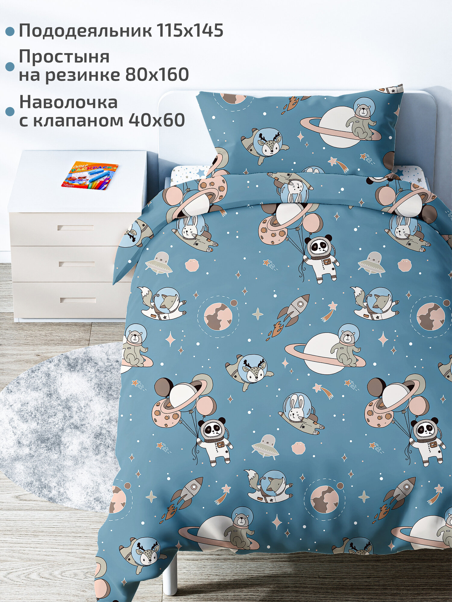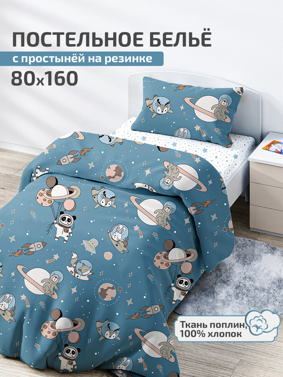 Купить Постельное белье с простыней на резинке 160х80 "Космонавты" DeepSleep