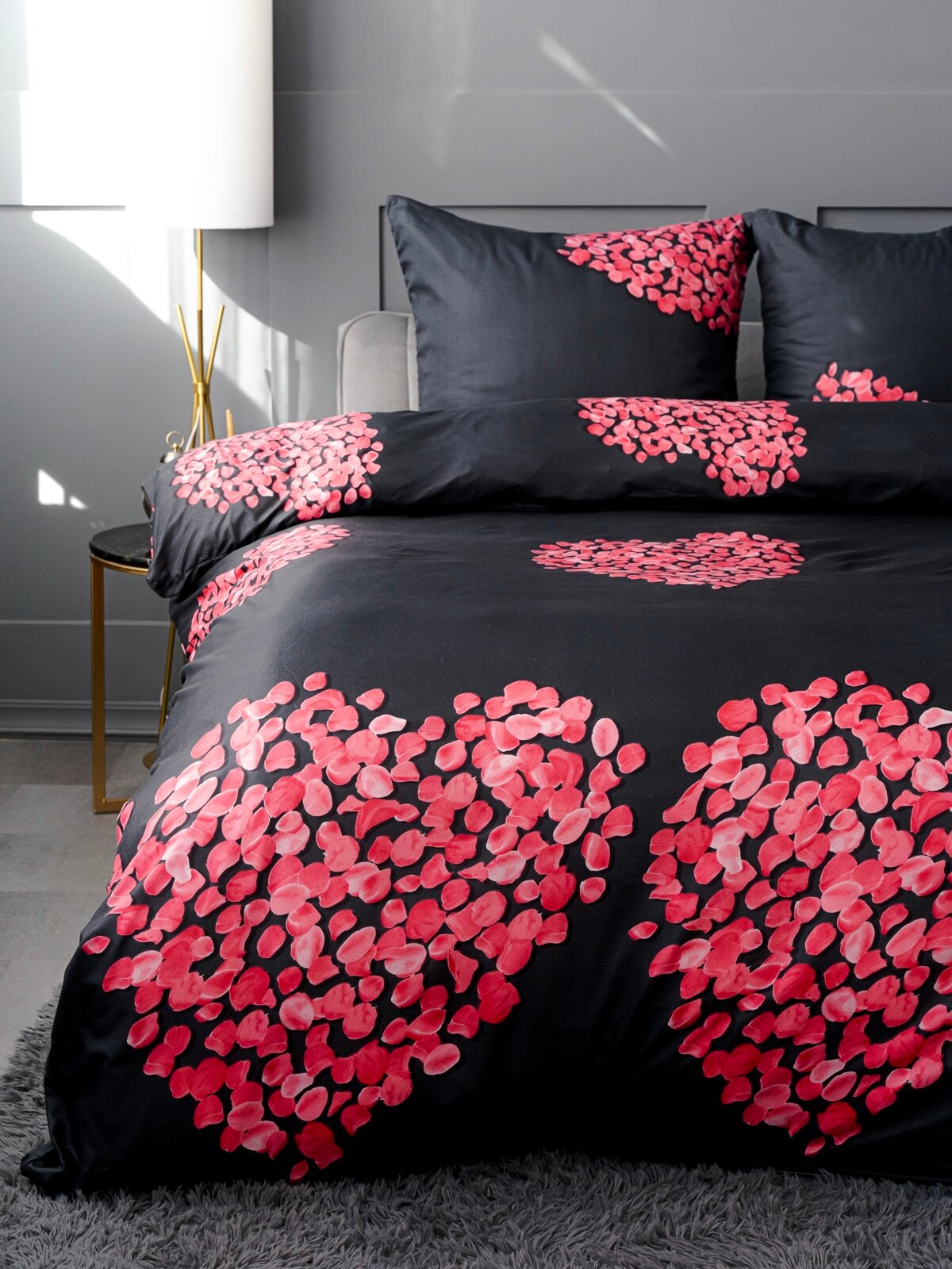 Постельное белье 2 спальное Павлина полисатин Сердце рис 8066, черный