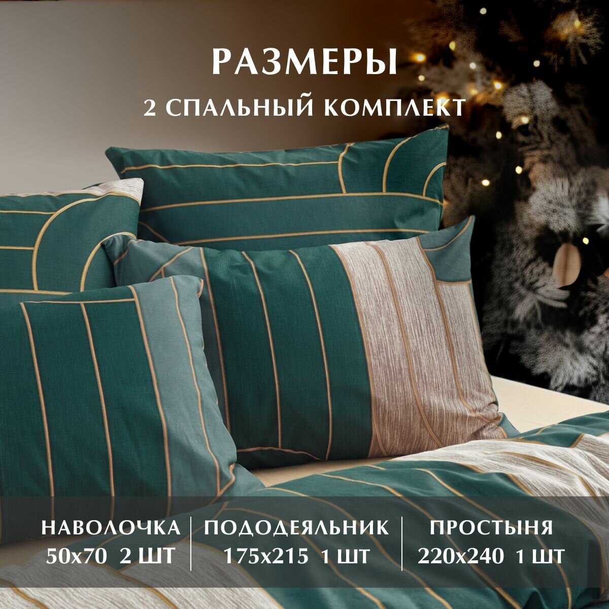 Постельное белье, Поплин, 1.5 спальное, 2 наволочки 50х70, GM, Виридиан 100% хлопок на Новый год