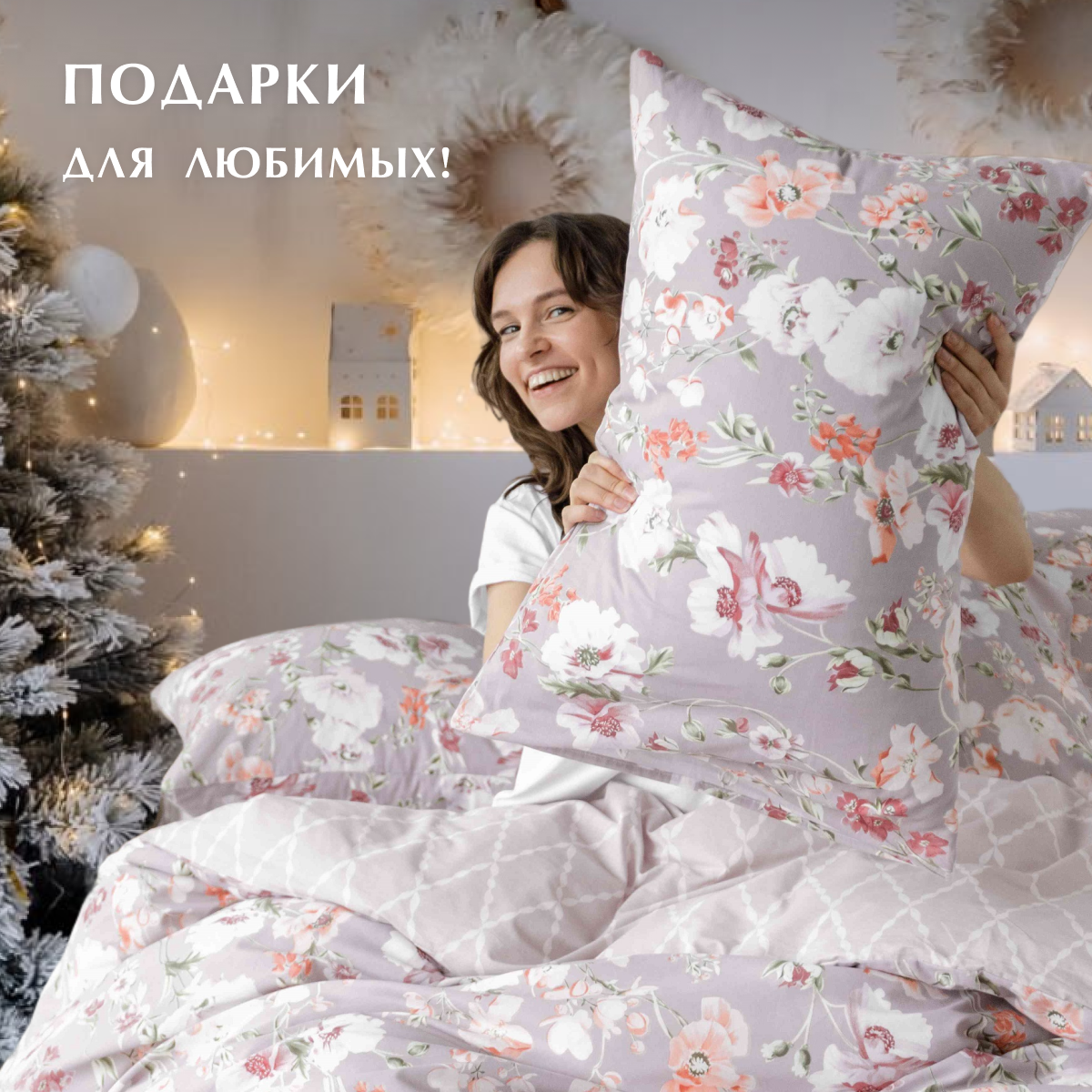 Постельное белье, Поплин, 1.5 спальное, 2 наволочки 70х70, GM, Цветочный вальс 100% хлопок на Новый год