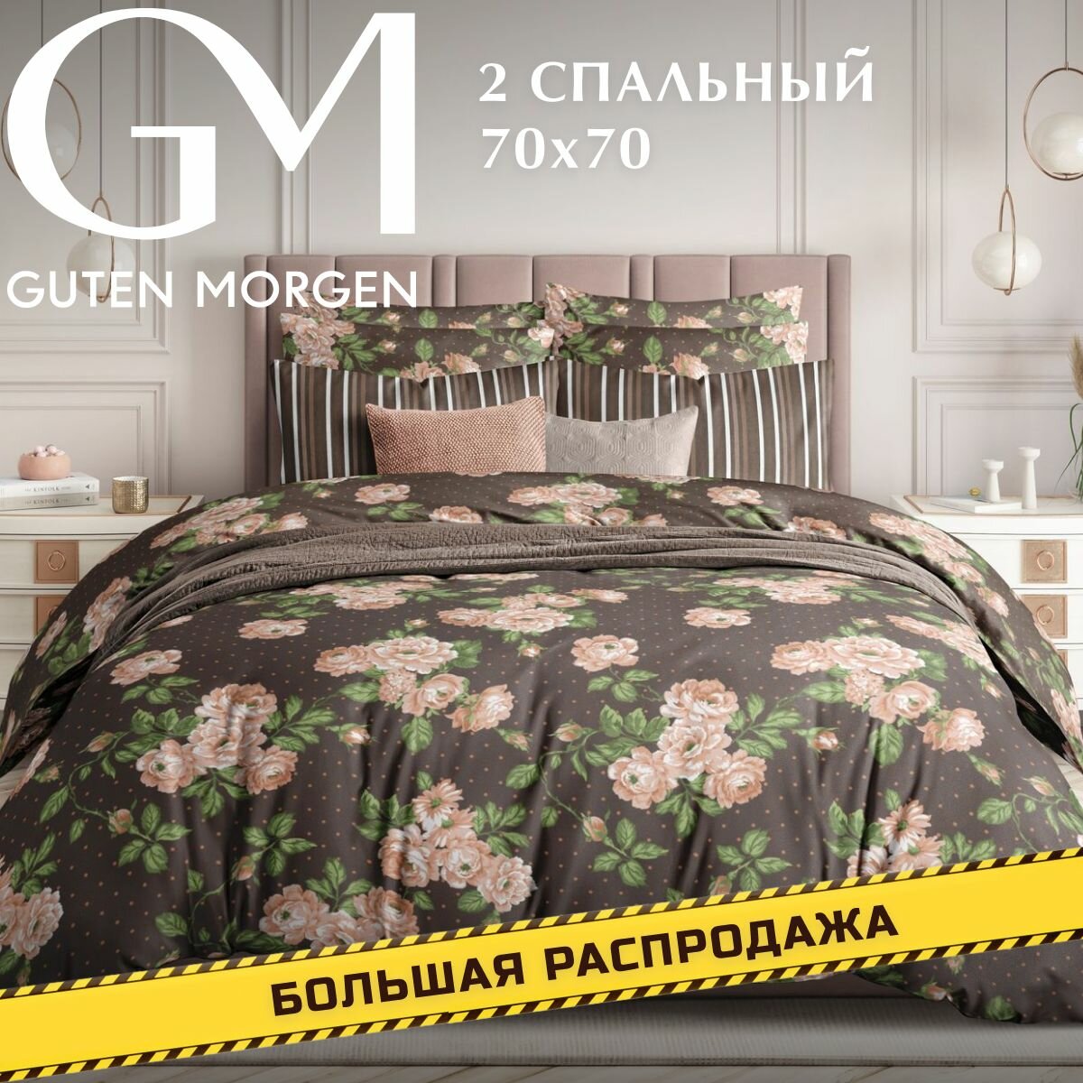 Постельное бельё/2 спальное/простынь 214x220/наволочки 70x70/комплект/поплин/Guten Morgen