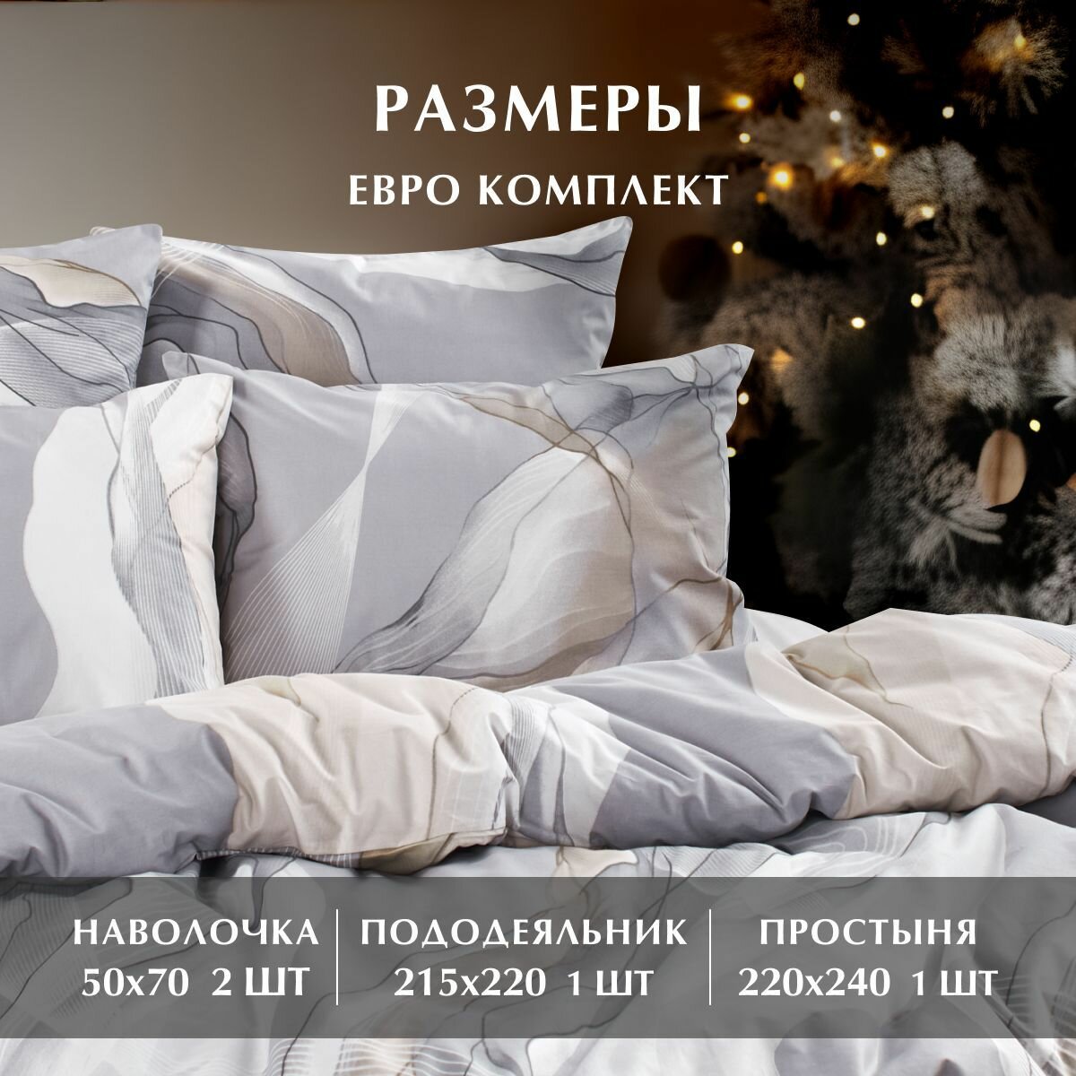 Постельное белье, Поплин, 1.5 спальное, 2 наволочки 70х70, GM, Fog 100% хлопок на Новый год