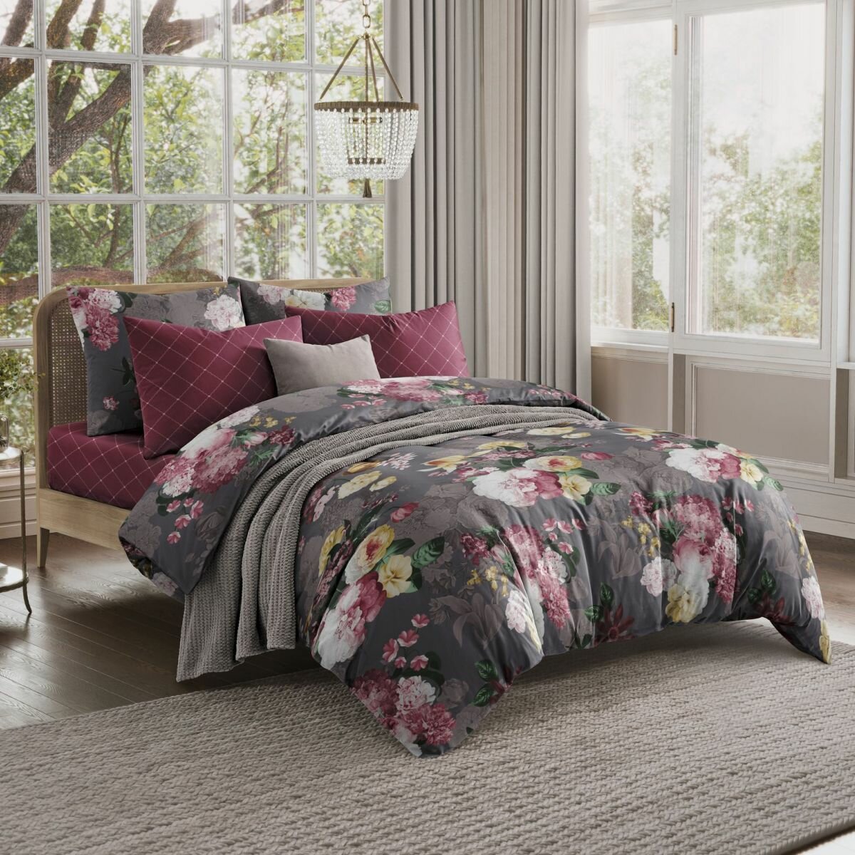 Постельное белье, Поплин, 2х спальное, 2 наволочки 70х70, GM, Garden rhapsody 100% хлопок на Новый год