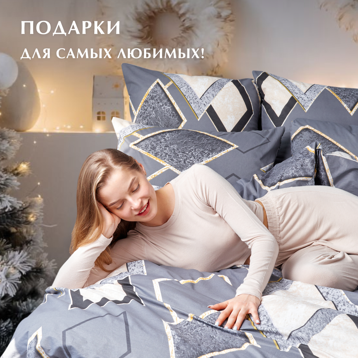Постельное белье, Поплин, 2х спальное, 2 наволочки 70х70, GM, Blurred 100% хлопок на Новый год