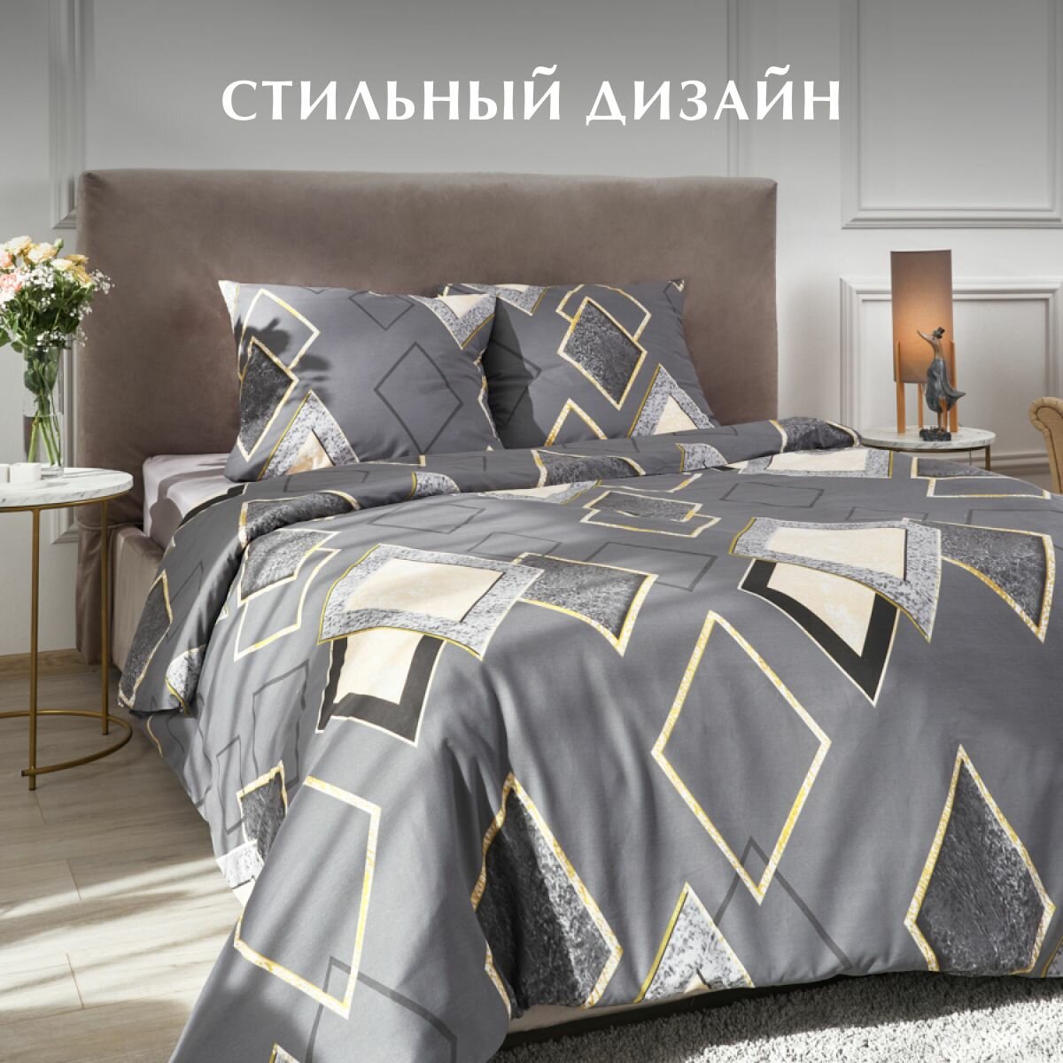 Постельное белье, Поплин, 1.5 спальное, 2 наволочки 70х70, GM, Rhomb 100% хлопок на Новый год