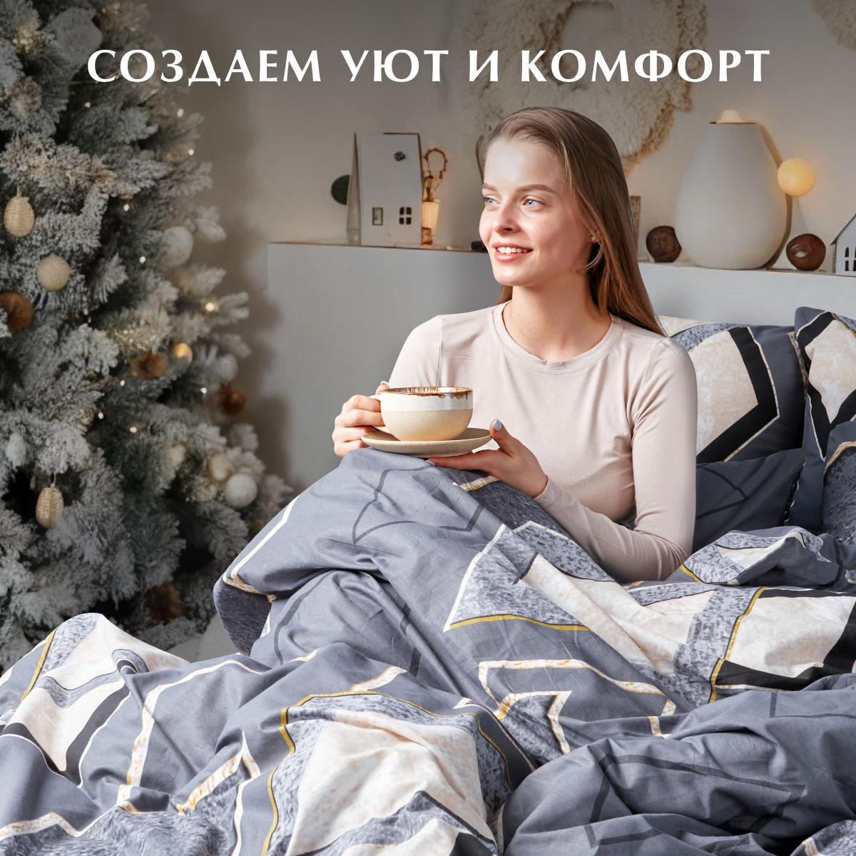 Постельное белье, Поплин, 1.5 спальное, 2 наволочки 70х70, GM, Fog 100% хлопок на Новый год