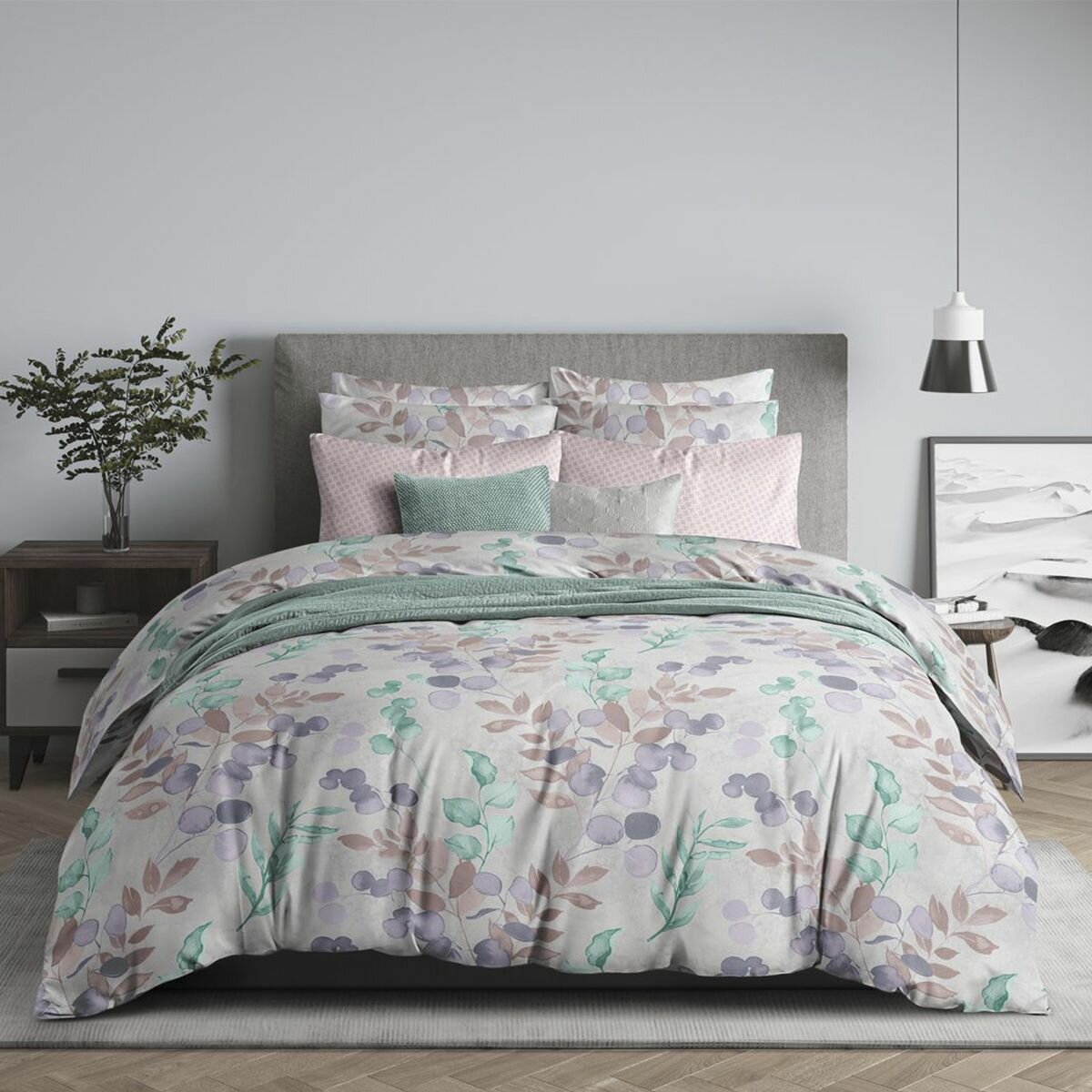 Постельное белье 2 спальный комплект с Евро простыней, Поплин, Guten Morgen, Виридиан, 100% хлопок