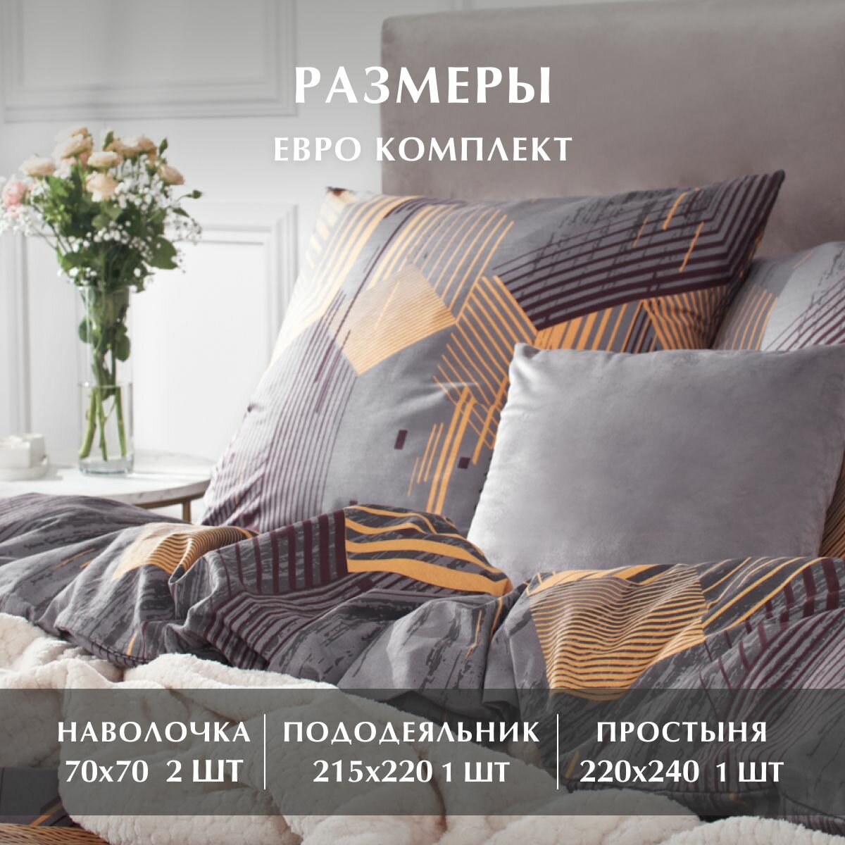 Постельное белье Евро комплект, Поплин, 100% хлопок