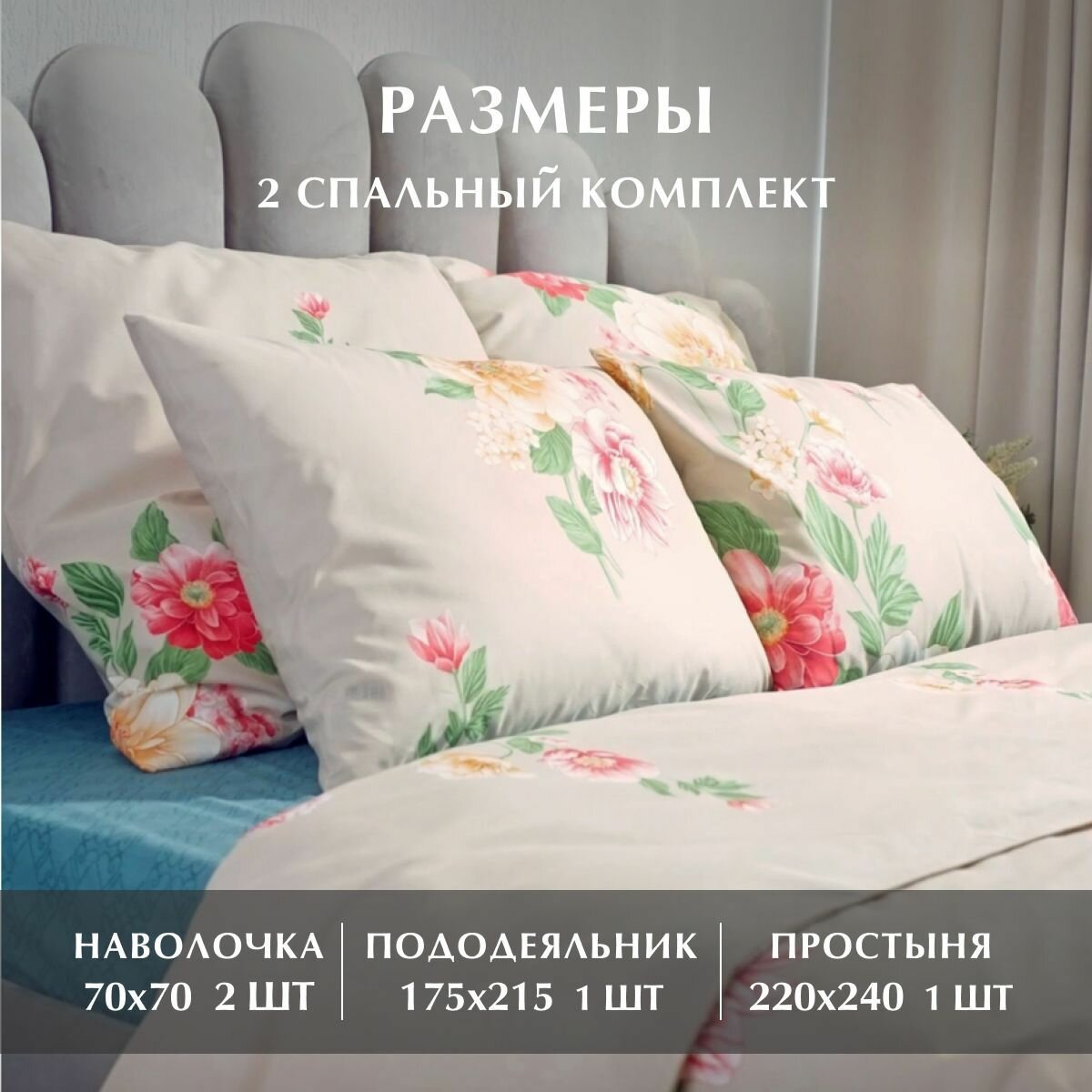 Постельное белье, Поплин, 2х спальное, 2 наволочки 70х70, GM, Цветущий сад 100% хлопок