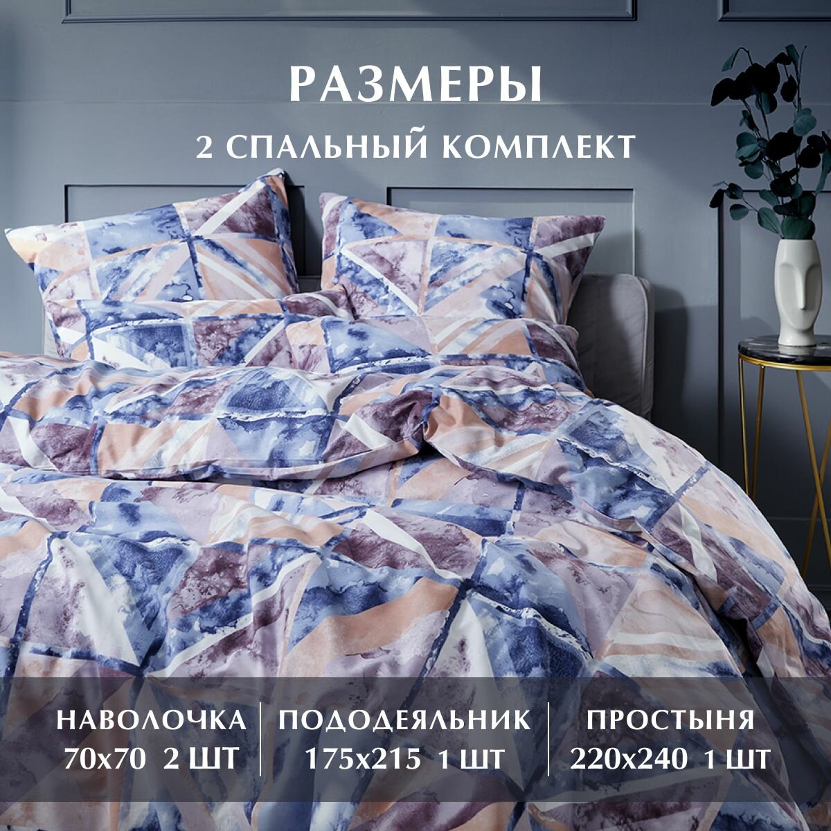 Постельное белье, Поплин, 1.5 спальное, 2 наволочки 70х70, GM, Blurred 100% хлопок