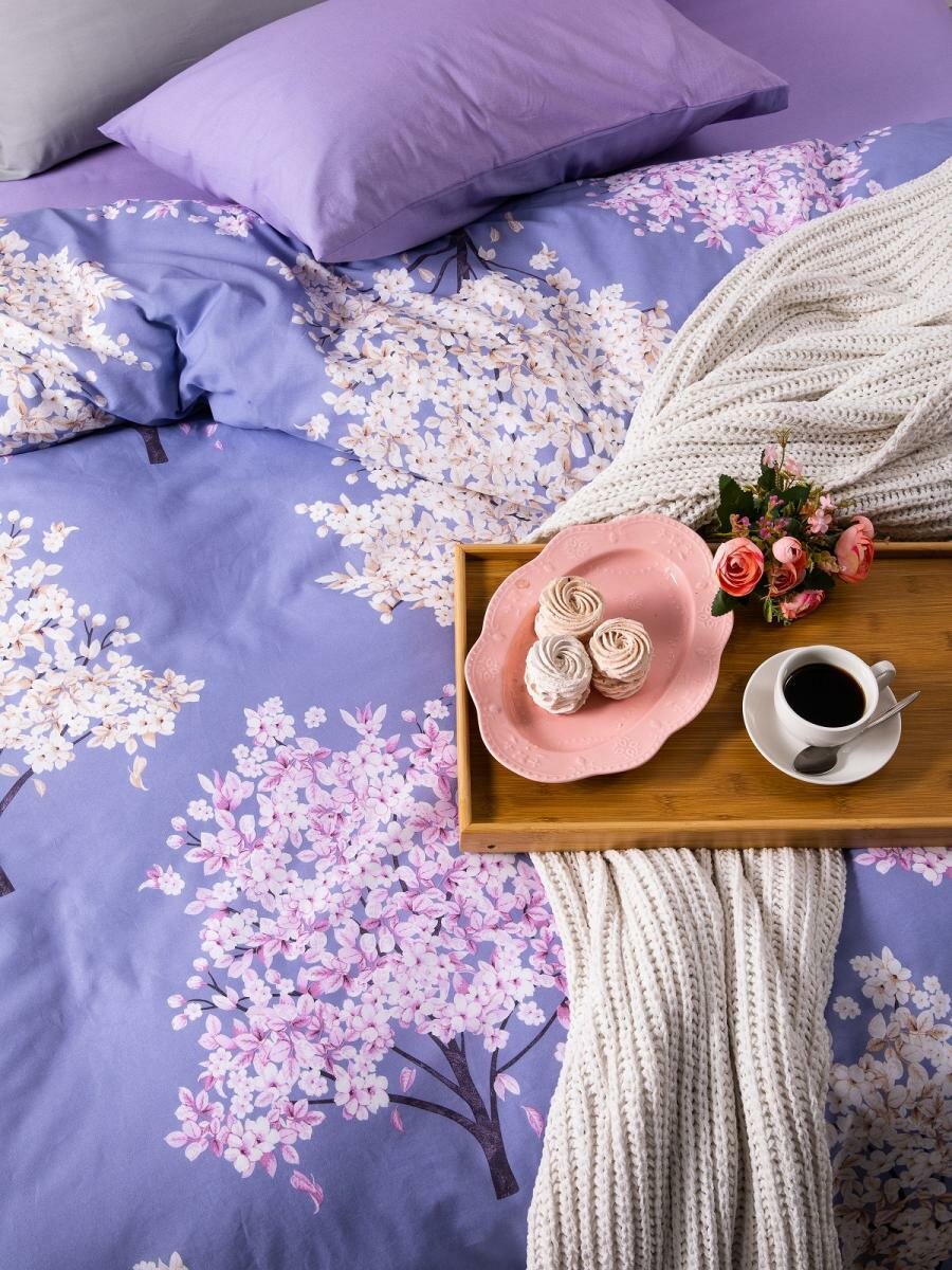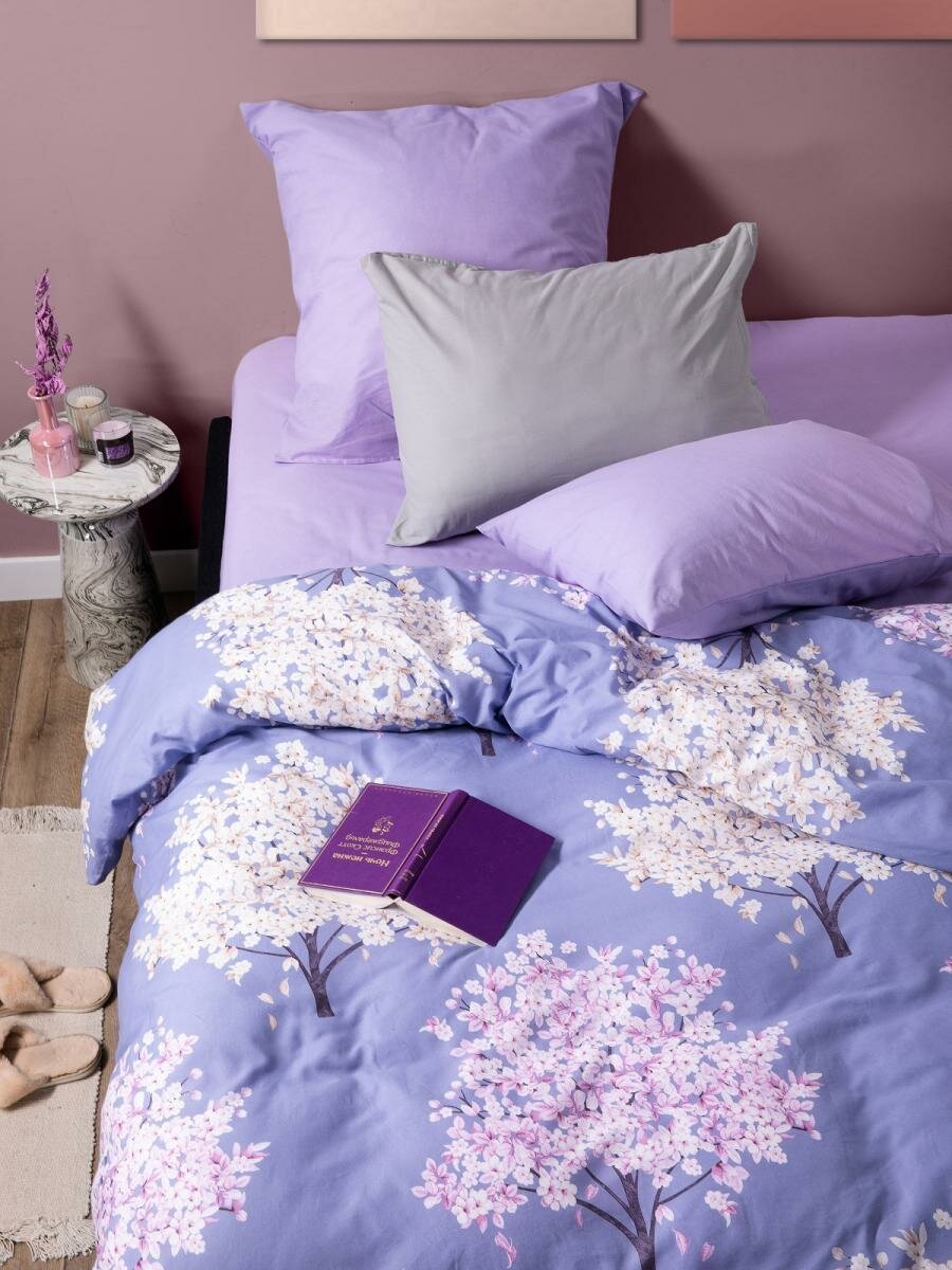 Купить Постельное Белье Семейное, наволочки 70х70, Поплин, Хлопок, Ночь Нежна Весенние деревья 71107-1+70895-4